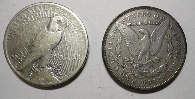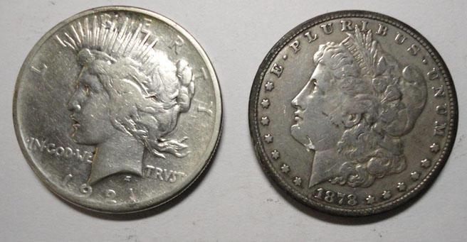 2 first year issue coins 1878CC F Morgan and 1921 Peace F $