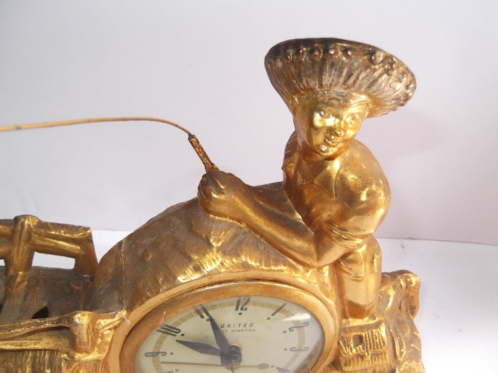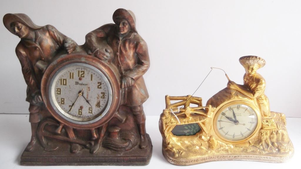 2 fishermen clocks including Windsor & boy fishing United self starting electric clock. Used condition.