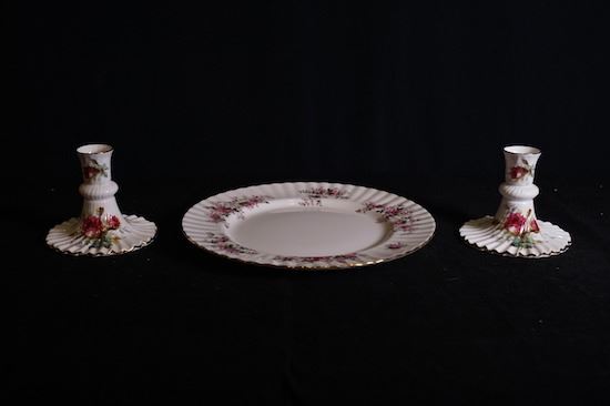 HAMMERSLEY England Bone China candlestick for 2 pieces + ROYAL ALBERT England Bone China tableware for 1 piece. Condition as is, shown in photos. H (candlestick): 10cm;plate:26.5cm(diameter)