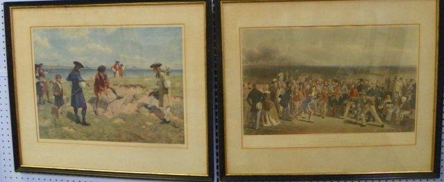 1- "First International", image approx. 17" H x 22.75". 1- "The Golfers", published by Alexander Hill, 1850, a grand match played over St. Andrews Links, approx 15" H x 24". Please read our terms of sale.