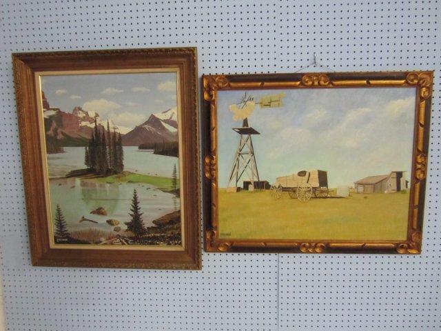 1- "Winter on Lakeside", approx. 28" x 22". 1- "Farm Wagon", approx. 24" x 30". Please read our terms of sale.
