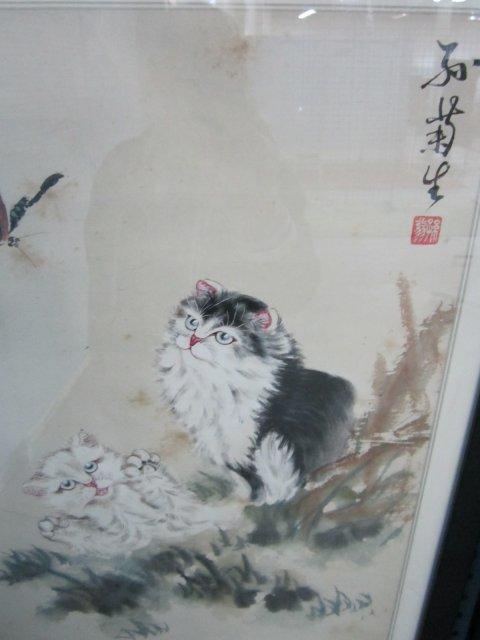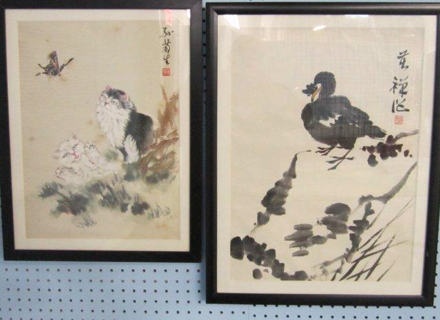 1- "2 Cats with Butterfly", approx. 19" x 13.5". 1- "Bird", black & white, approx. 15.75" W x 21.5". Please read our terms of sale.