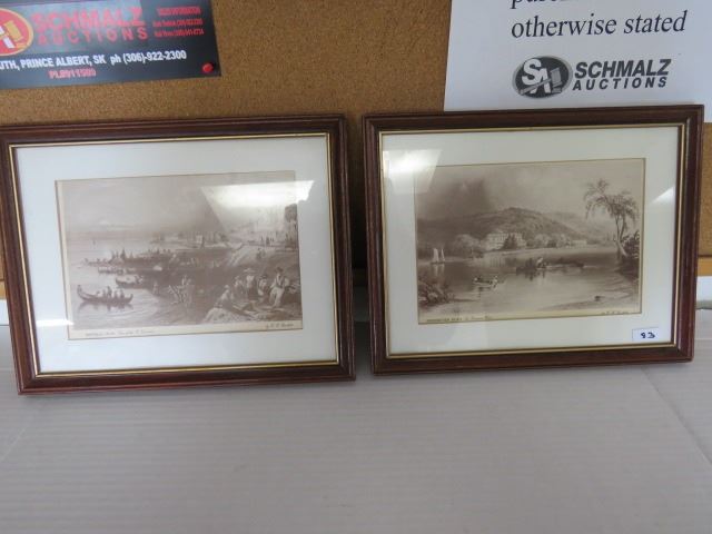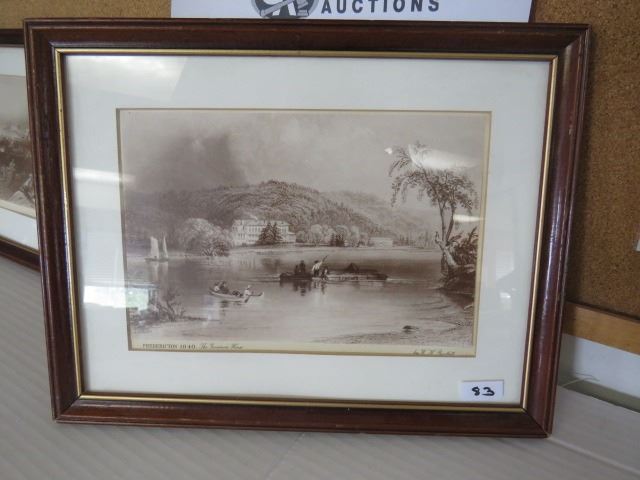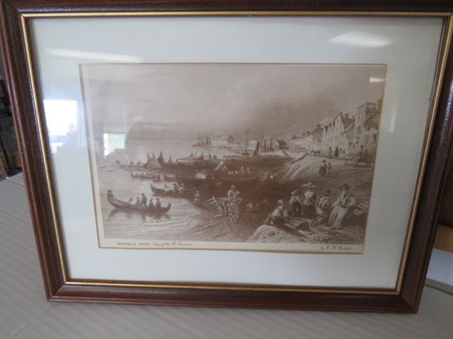 2 framed prints 10x13" Montreal 1939 view of St. Lawrence, Fredericton 1840 Governor's House - W. H.