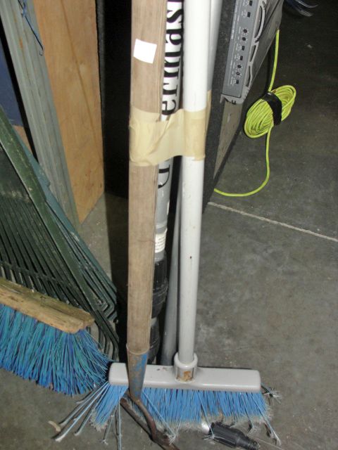 2 garden hose attach guttermasters, a broom and a