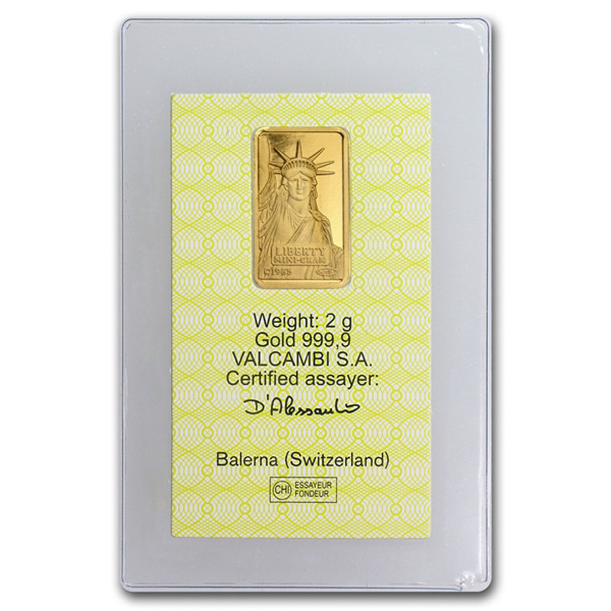 2 gram Statue of Liberty Credit Suisse Gold Bar (In Assay)