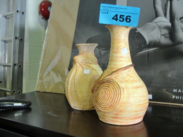 2 hand crafted pottery vases
