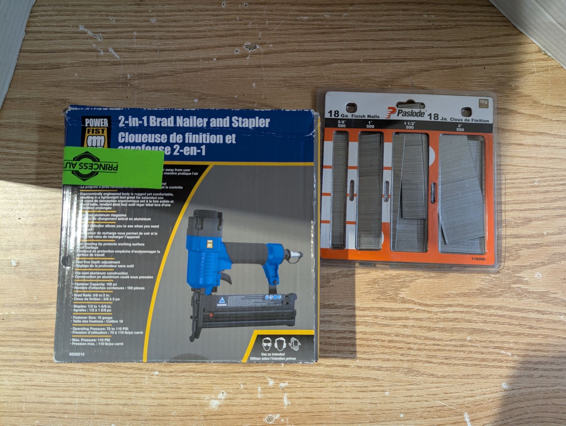 2 in 1 Nailer and Stapler + 18 GA Finish Nails Pack (Sealed)