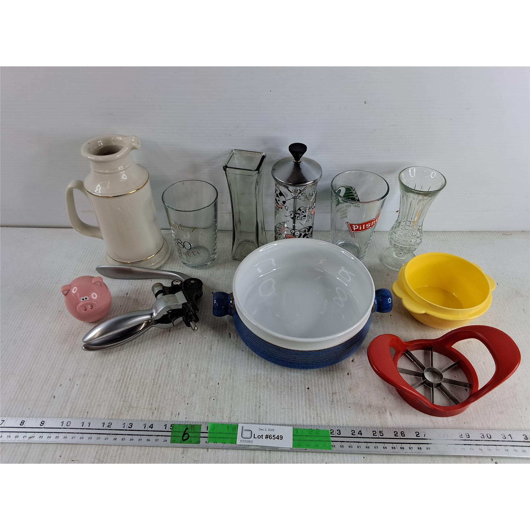 2 in 1 Salt & Pepper Shaker, Apple Slicer, Ceramic Bowl, Glasses, Wine Opener, Vase, Misc