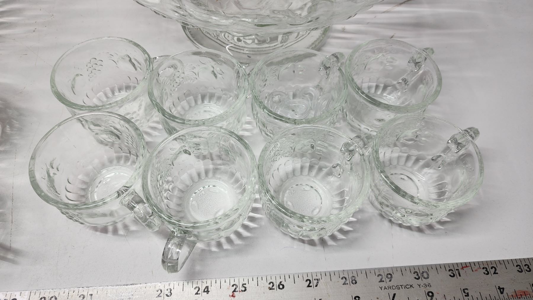 2 large Punch Bowl Sets - vintage 8 cups - one set has ladle and hooks