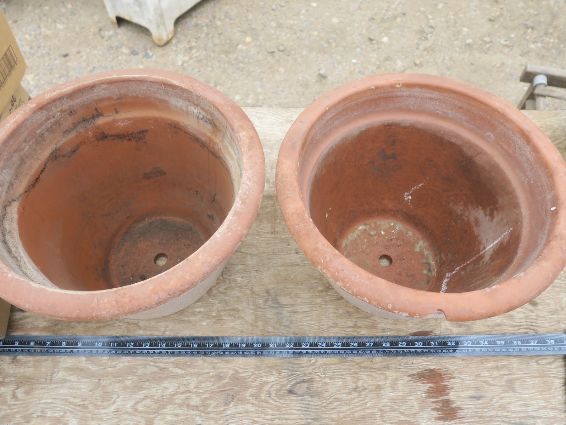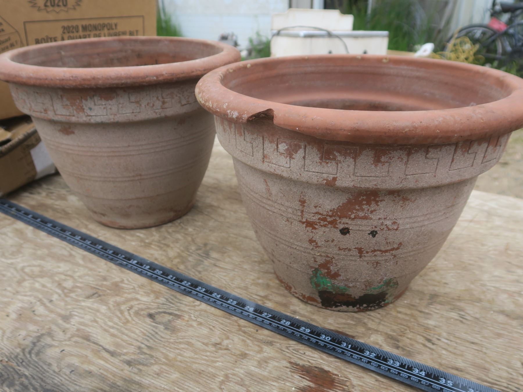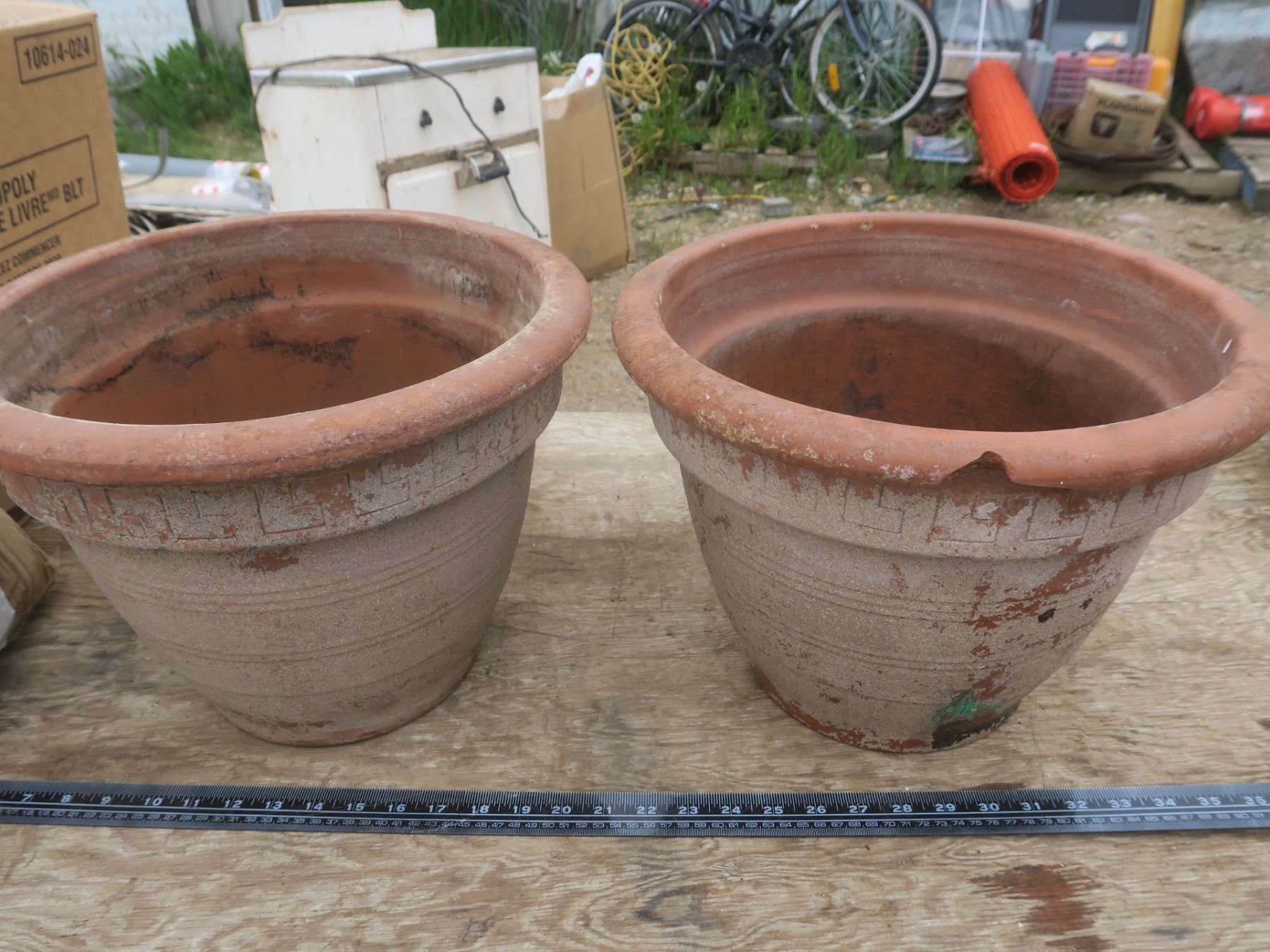 2 large clay flower pots - 14.5"W