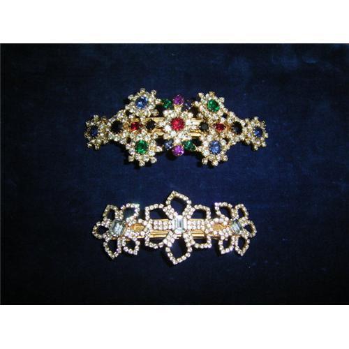 2 large hair clips with rhinestones in gold-plated setting [not glued].
