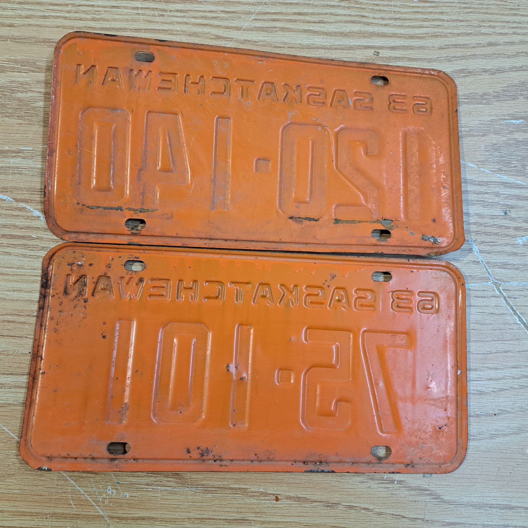 2 licence plates Sask one 6 digit and one 5 digit