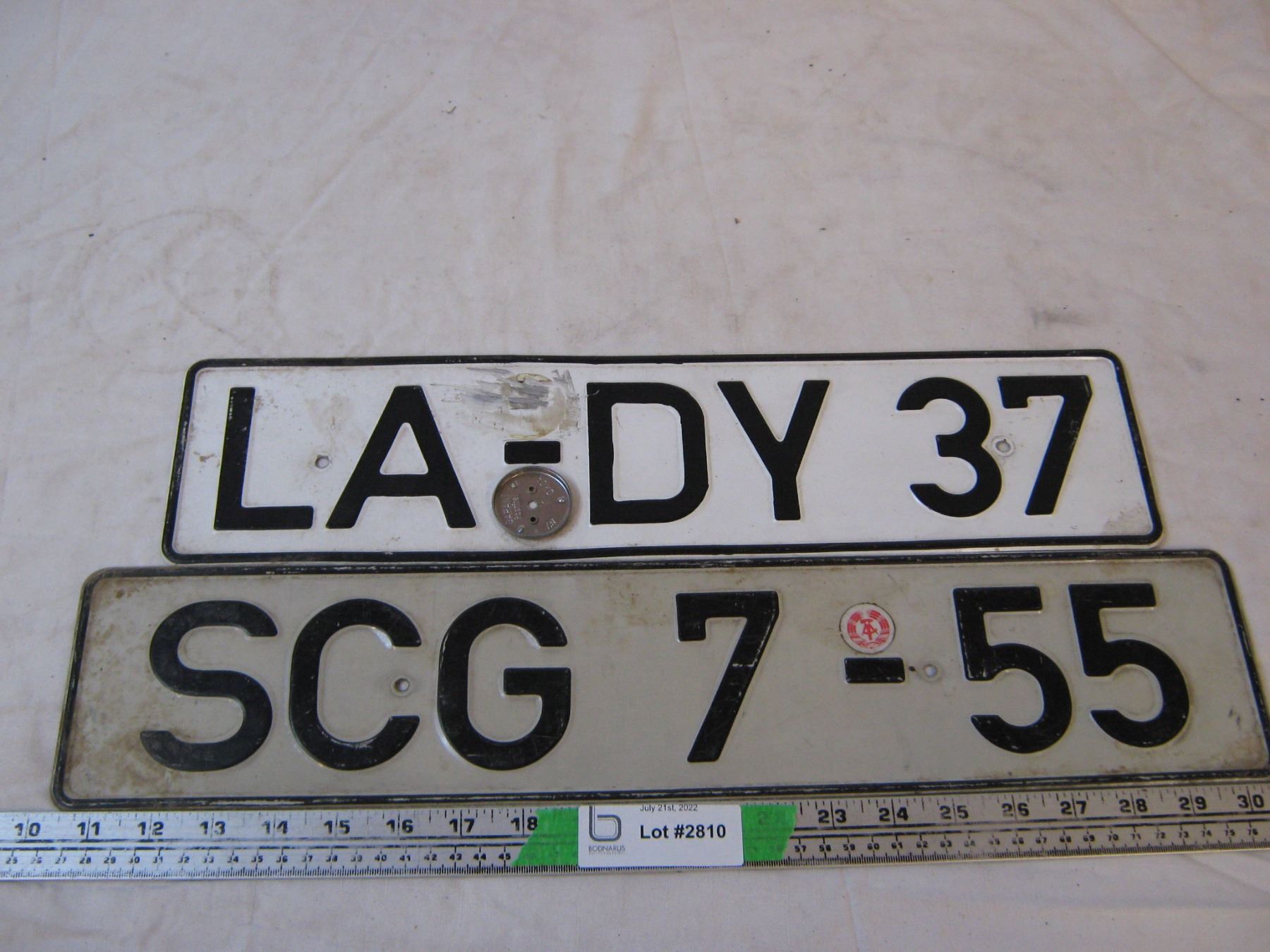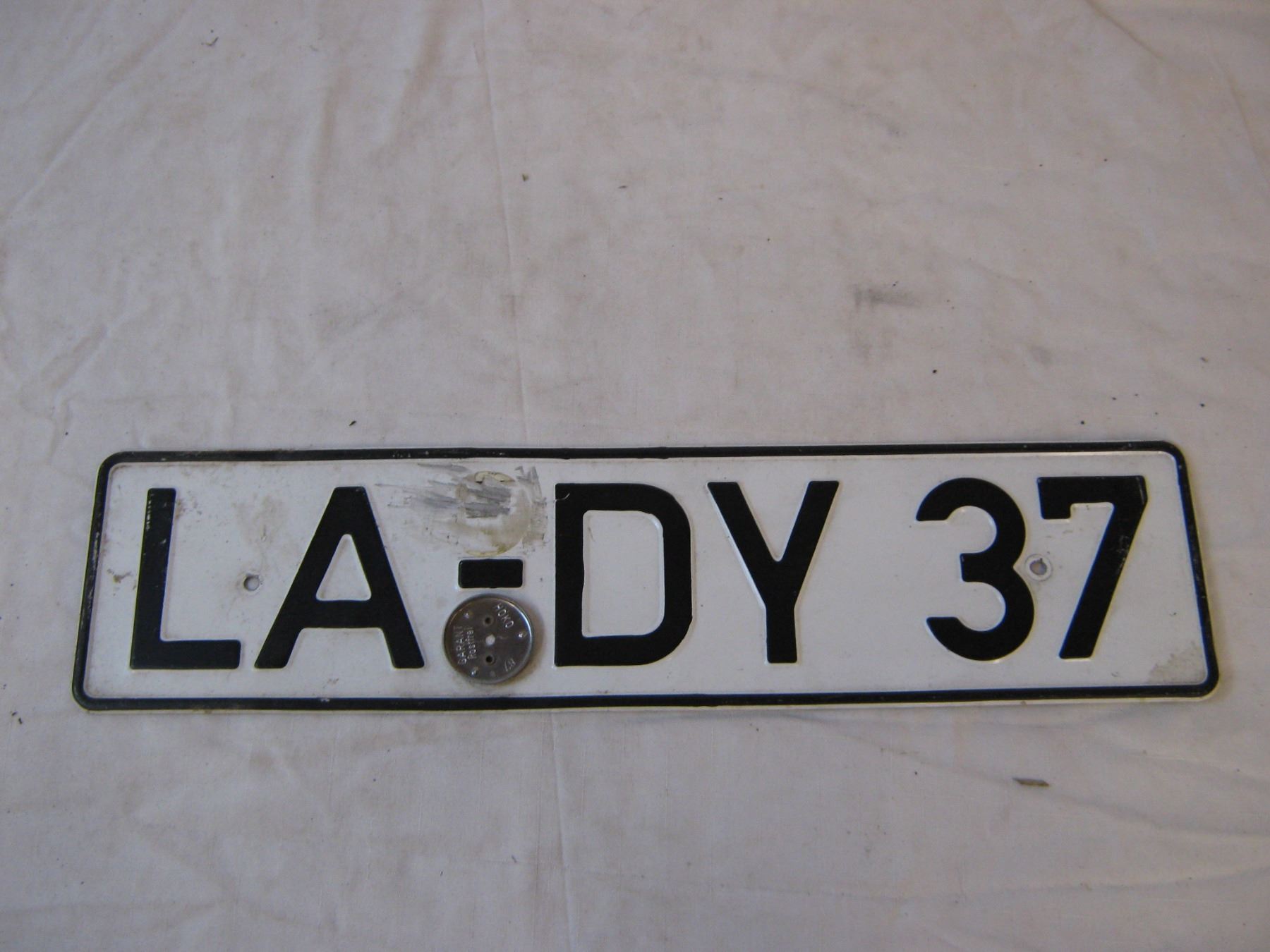 Top plate: LA-DY 37, LA = City of Landshut (north of Munich), Germany. Missing both validation decals. Bottom: SCG 7 - 55 = Post reunification East Germany, 1990-1993 type. SC = Borna, south of Leipzig.