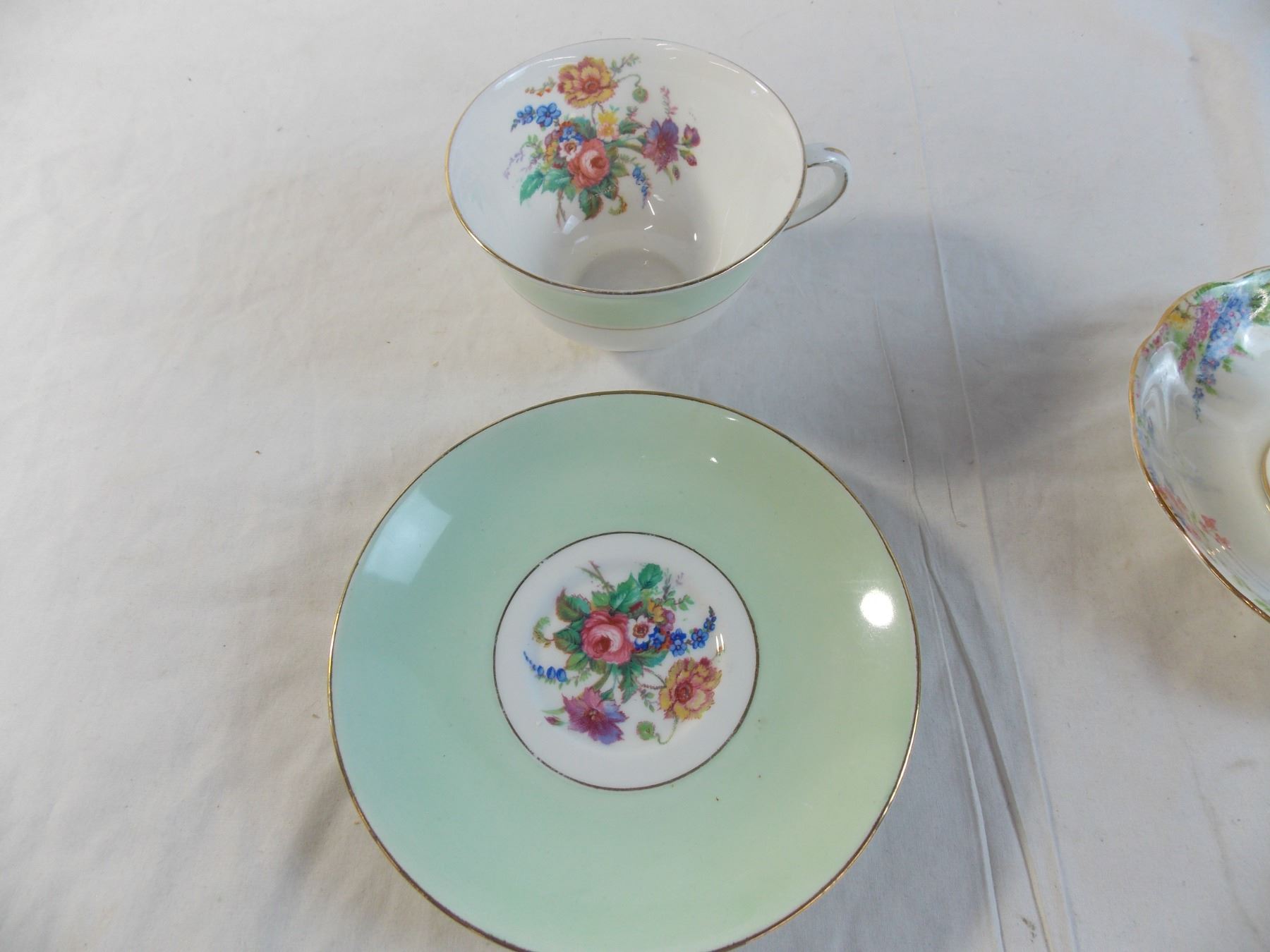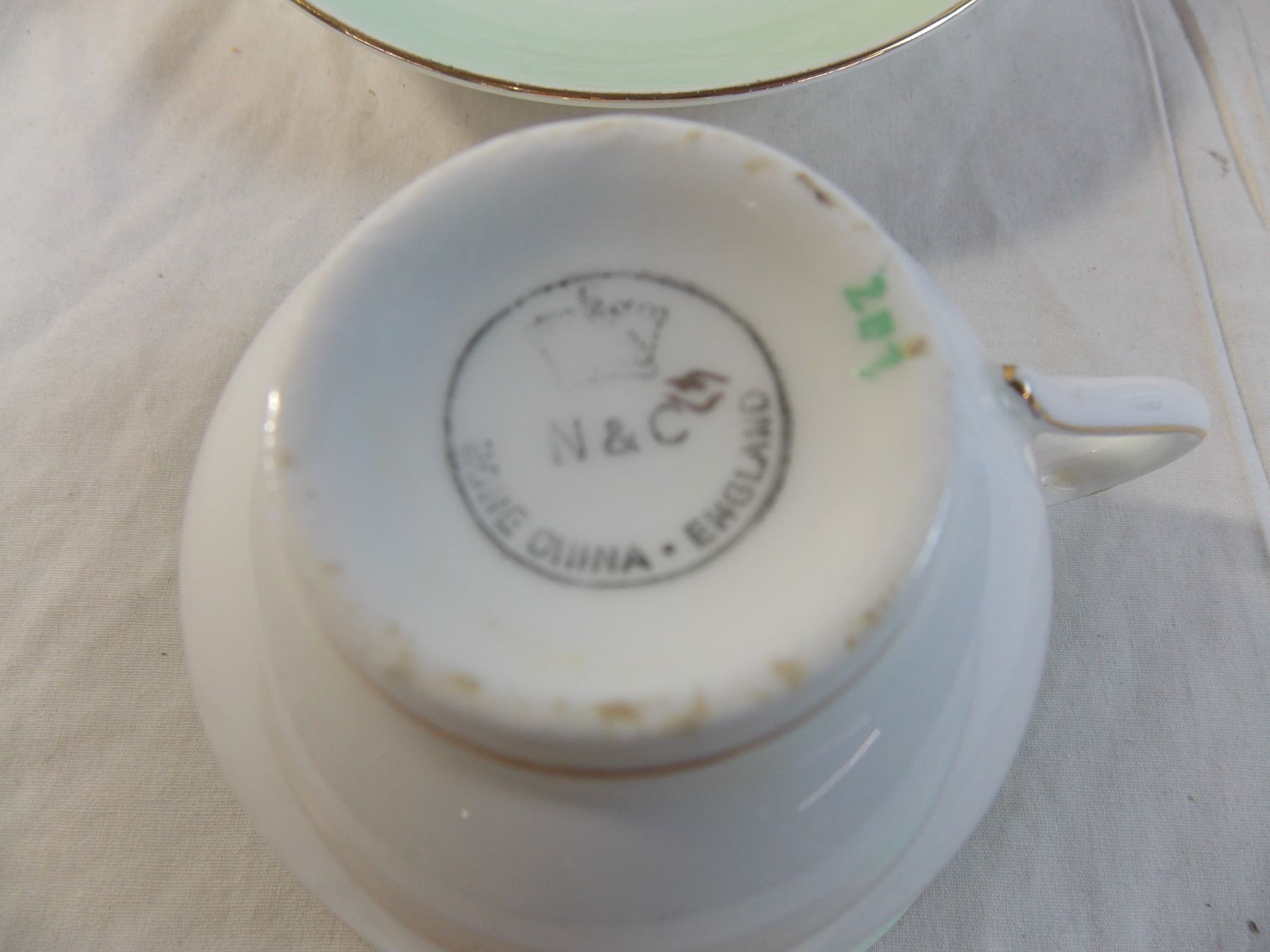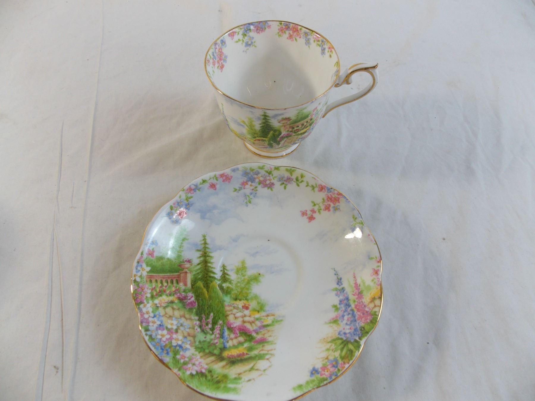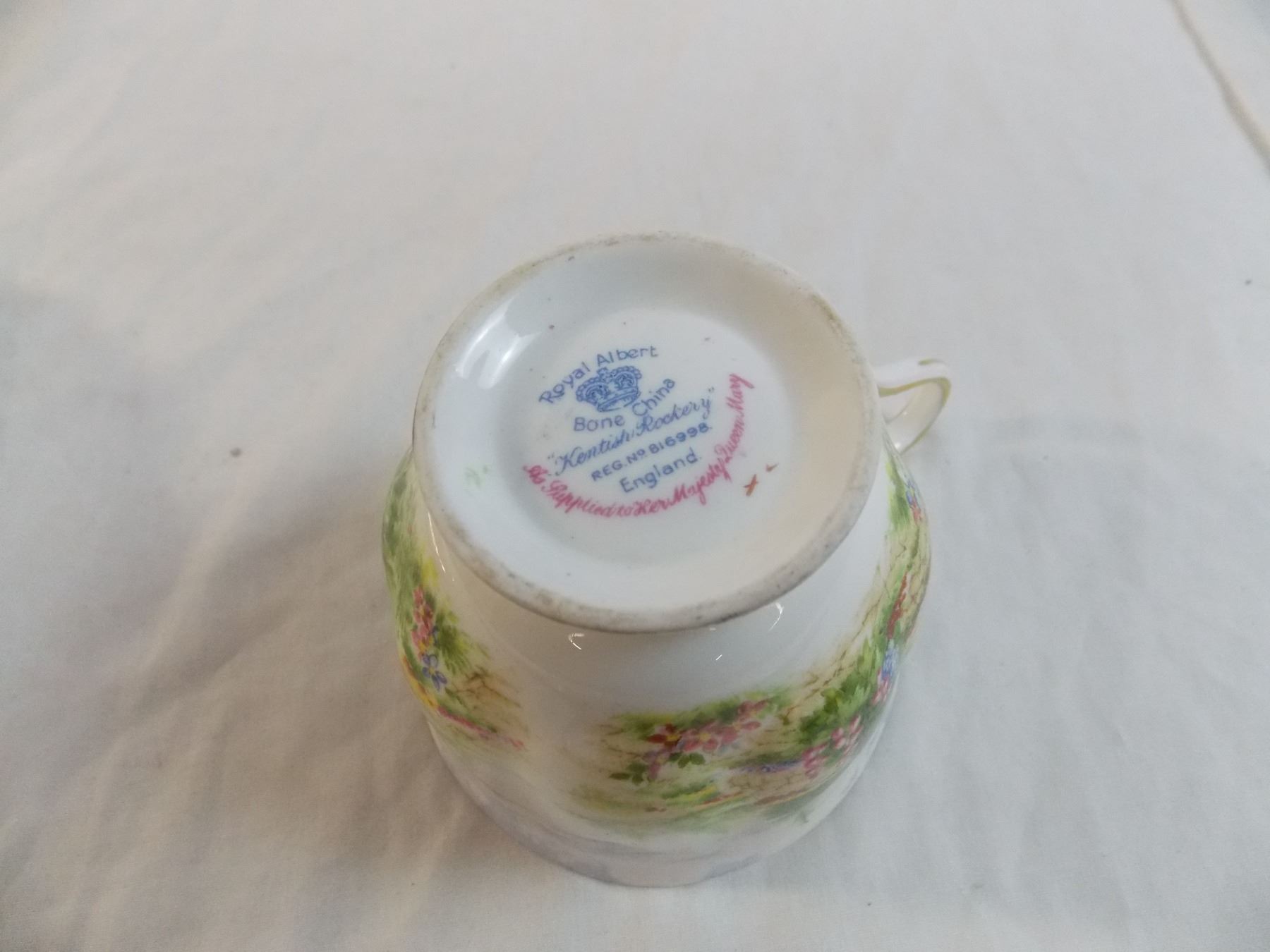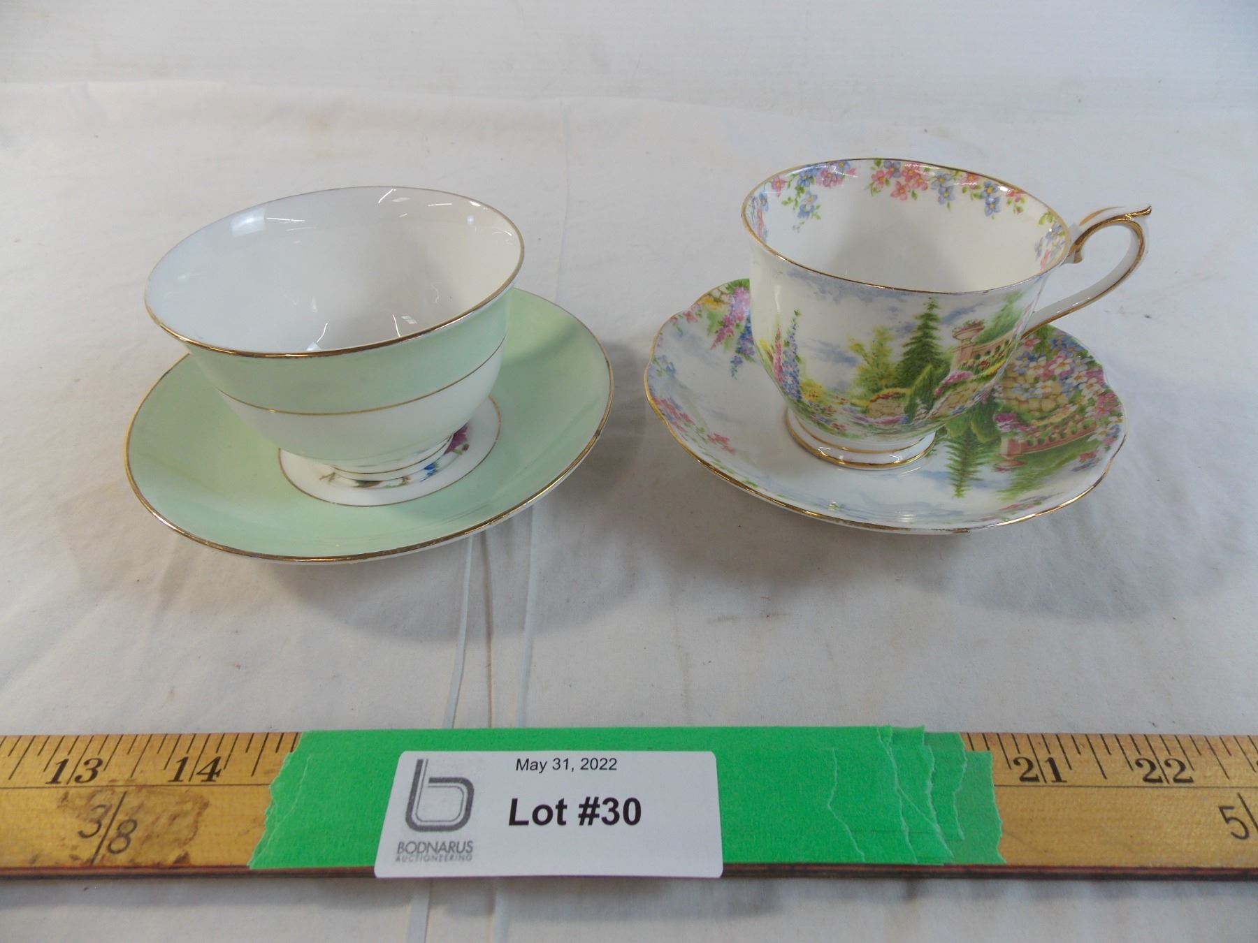 (2) matching teacup + saucers - N & C Bone China (England) + Royal Albert Bone China (England) - Kentish Rockery Reg #816998