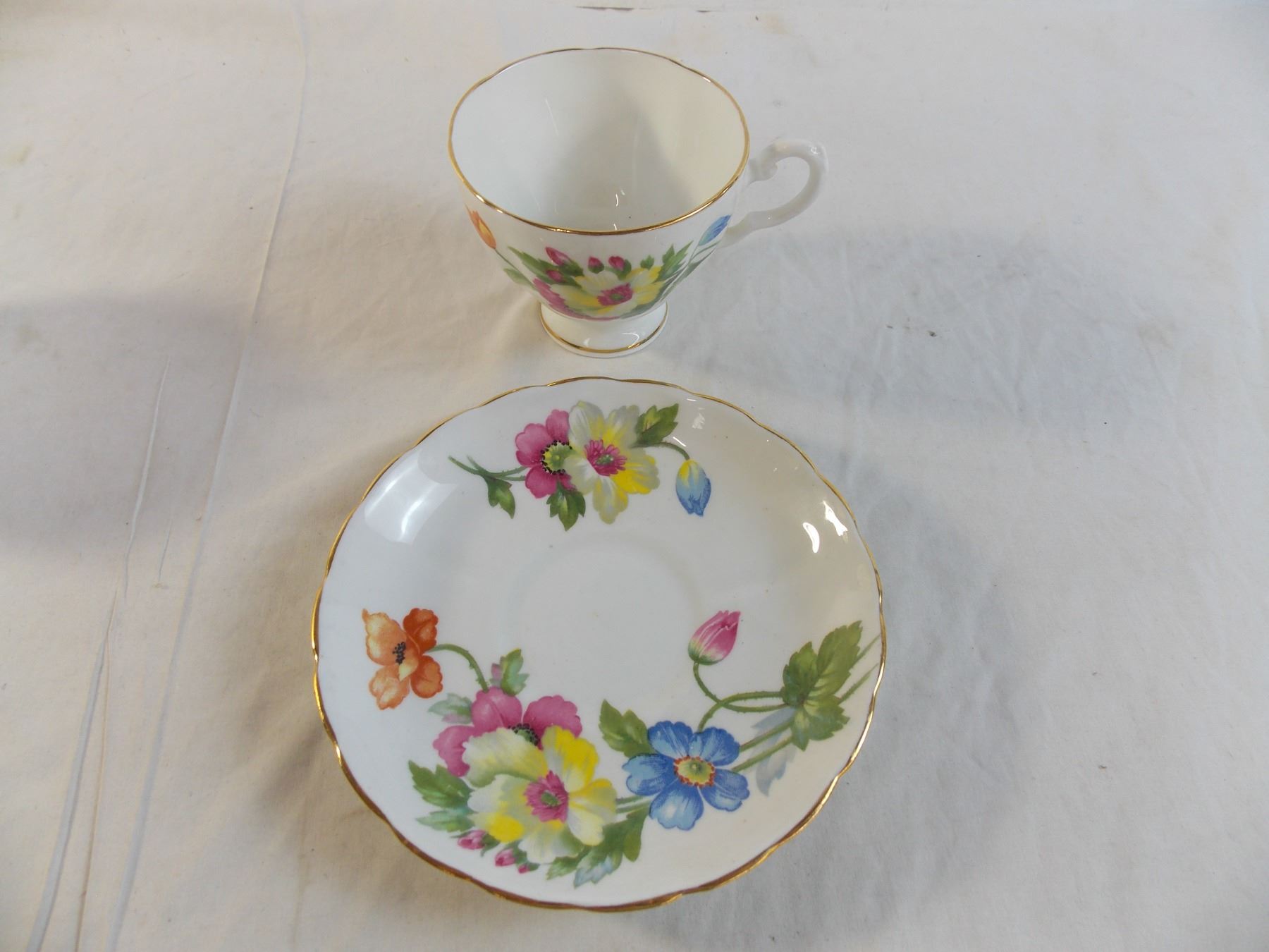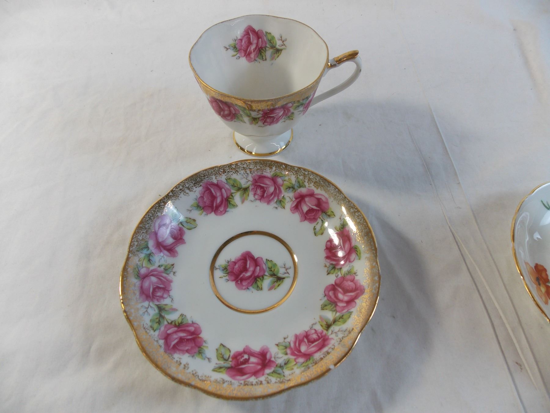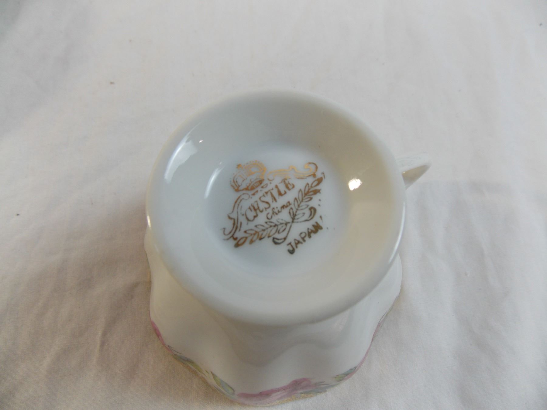(2) matching teacup + saucers - Plant Tuscan + Castle (Japan)