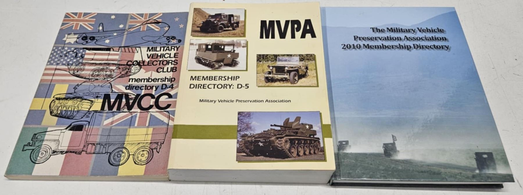 2 military vehicle collectors club directories and a preservation association 2010 directory