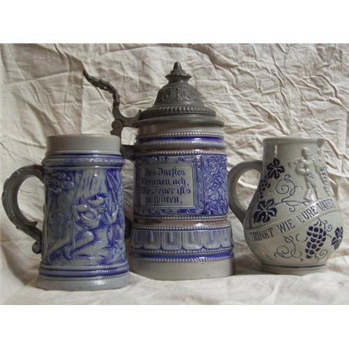 The middle one is including the pewter lid 19.5 centimeter [7.67 inches] high. It has a very big crack in the bottom, but it is still a very interesting collectors item.