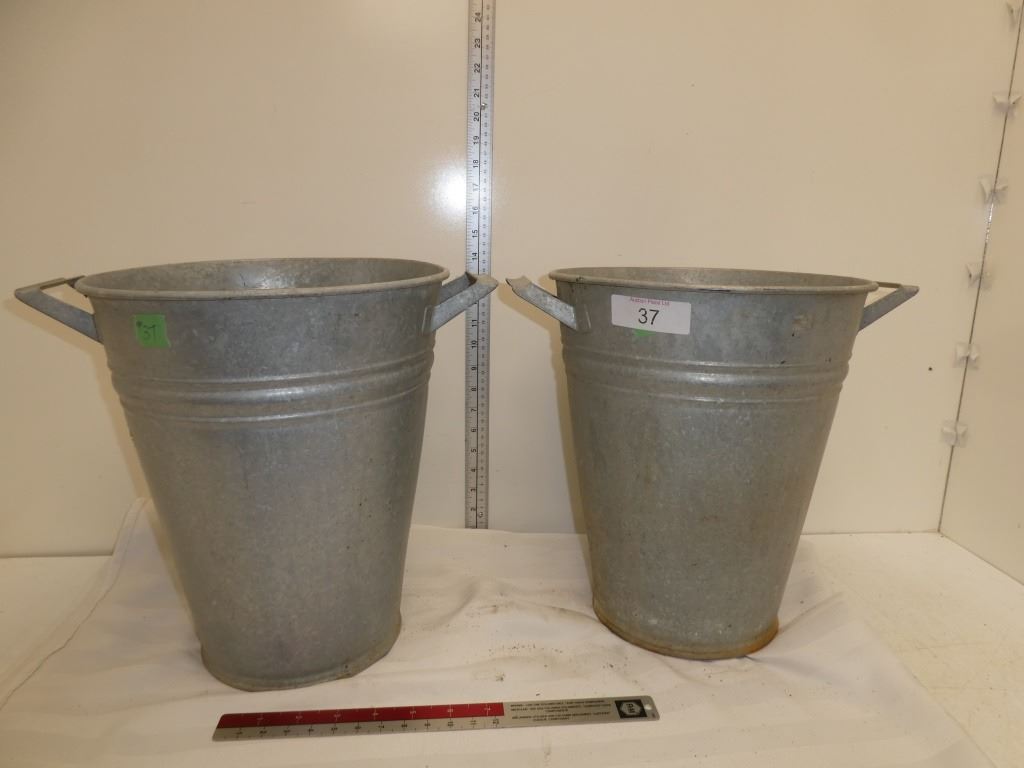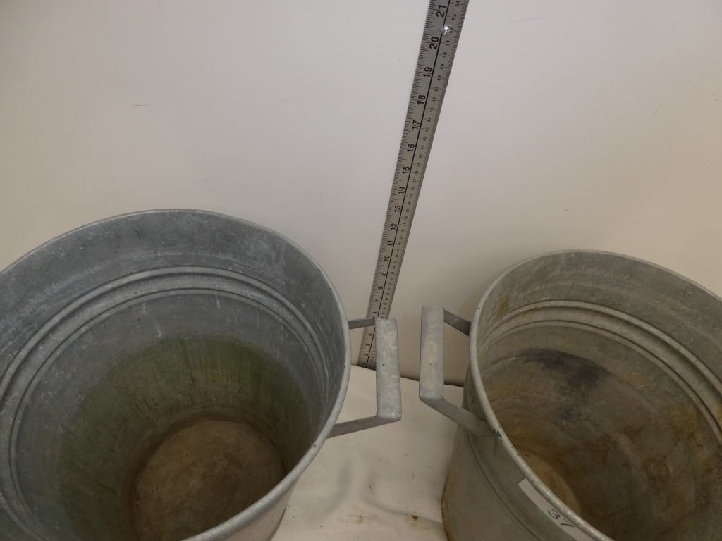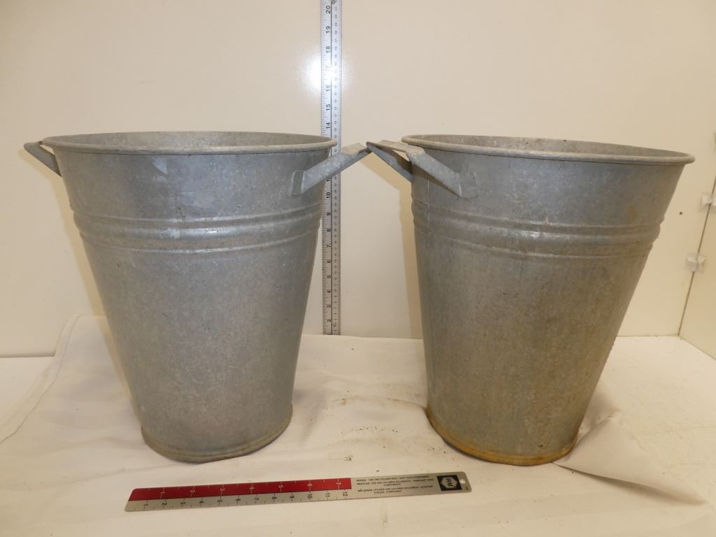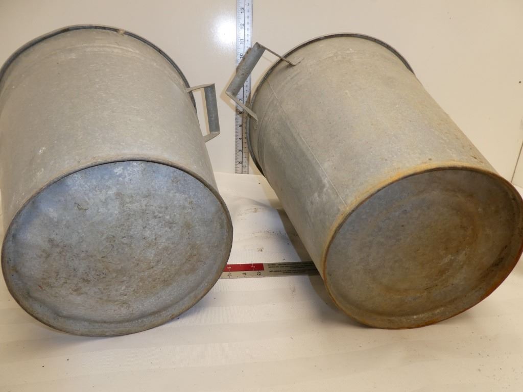 2 old galvanized buckets w/ 2 metal handles