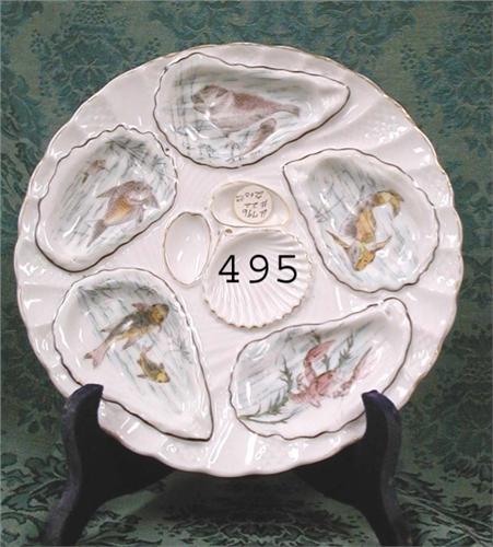 2 oyster plates with fish and lobster decoration – marked Registriat and #’d