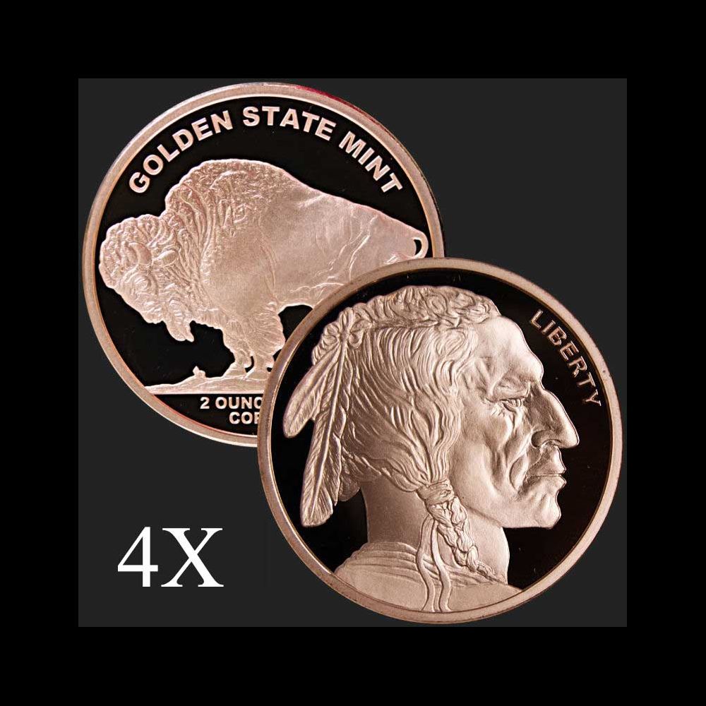 4 units of 2 oz Buffalo .999 Fine Copper Bullion Round