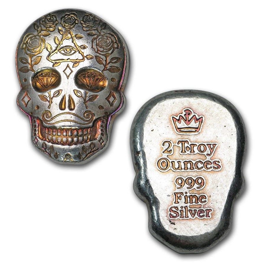 2 oz Hand Poured Silver Skull - Day of the Dead: All Seeing Eye