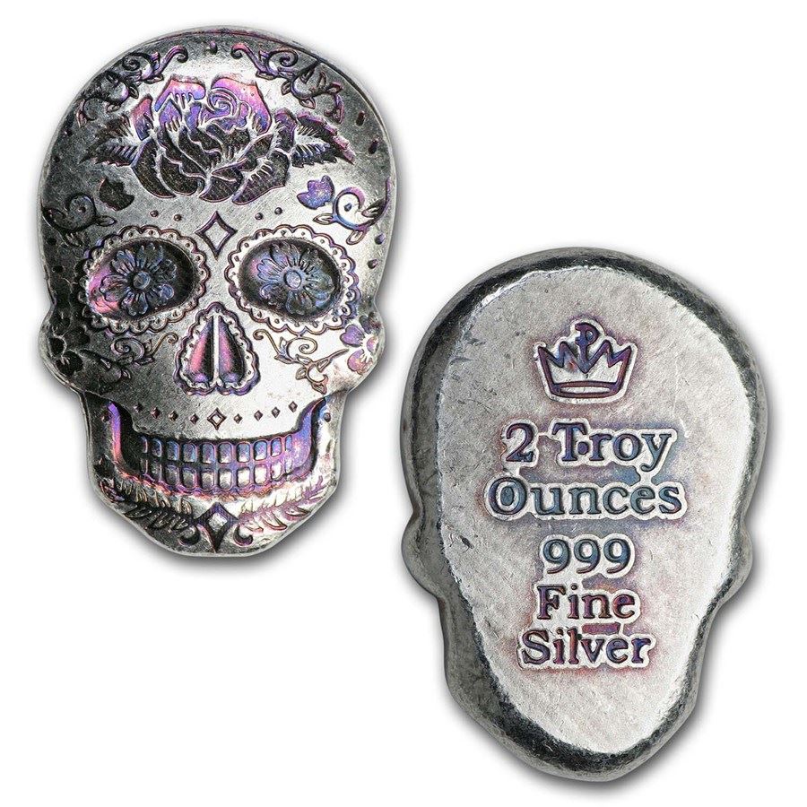 2 oz Hand Poured Silver Skull - Day of the Dead: Rose