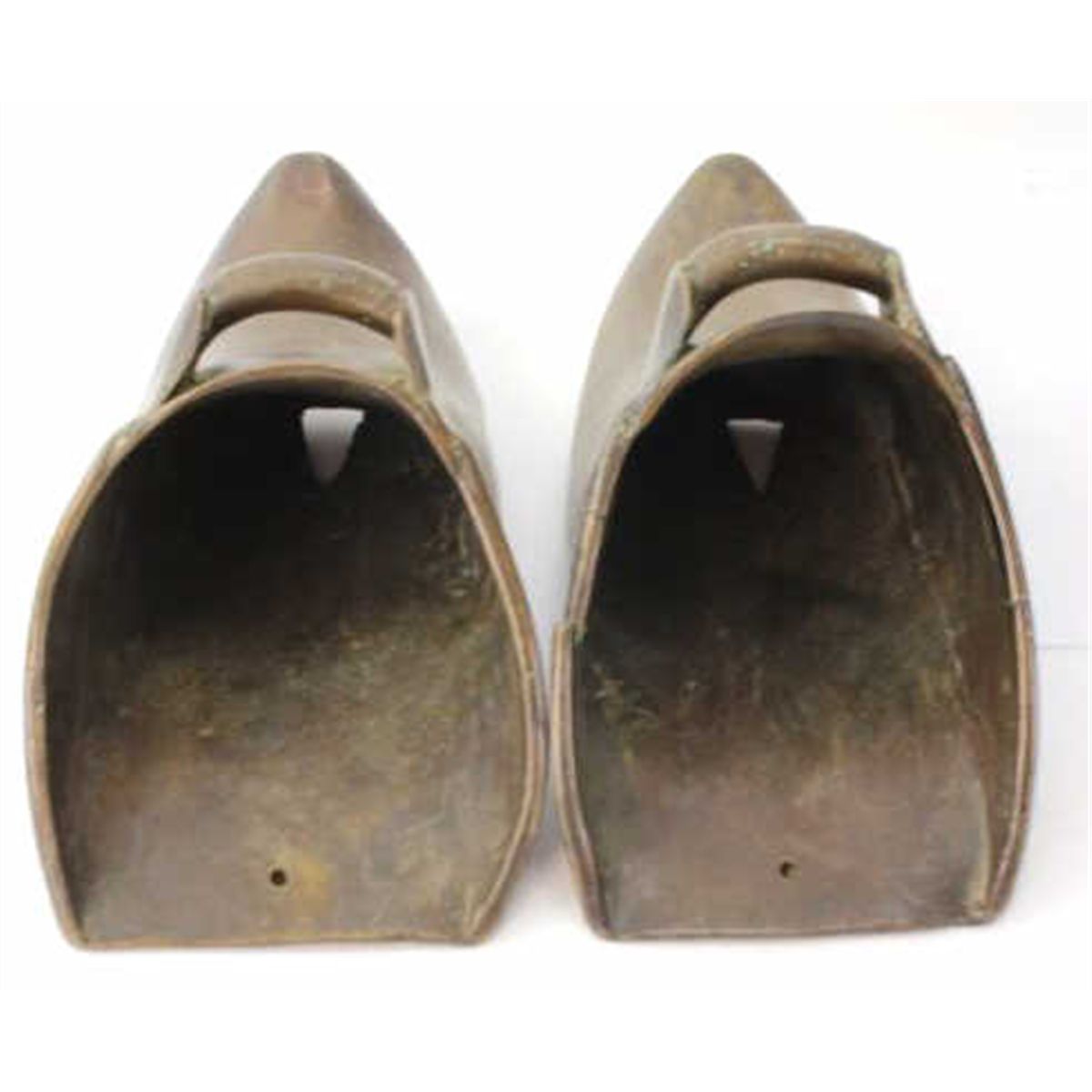 2 pair antique brass Spanish stirrups. Both sets remain in good condition measuring 9" long.