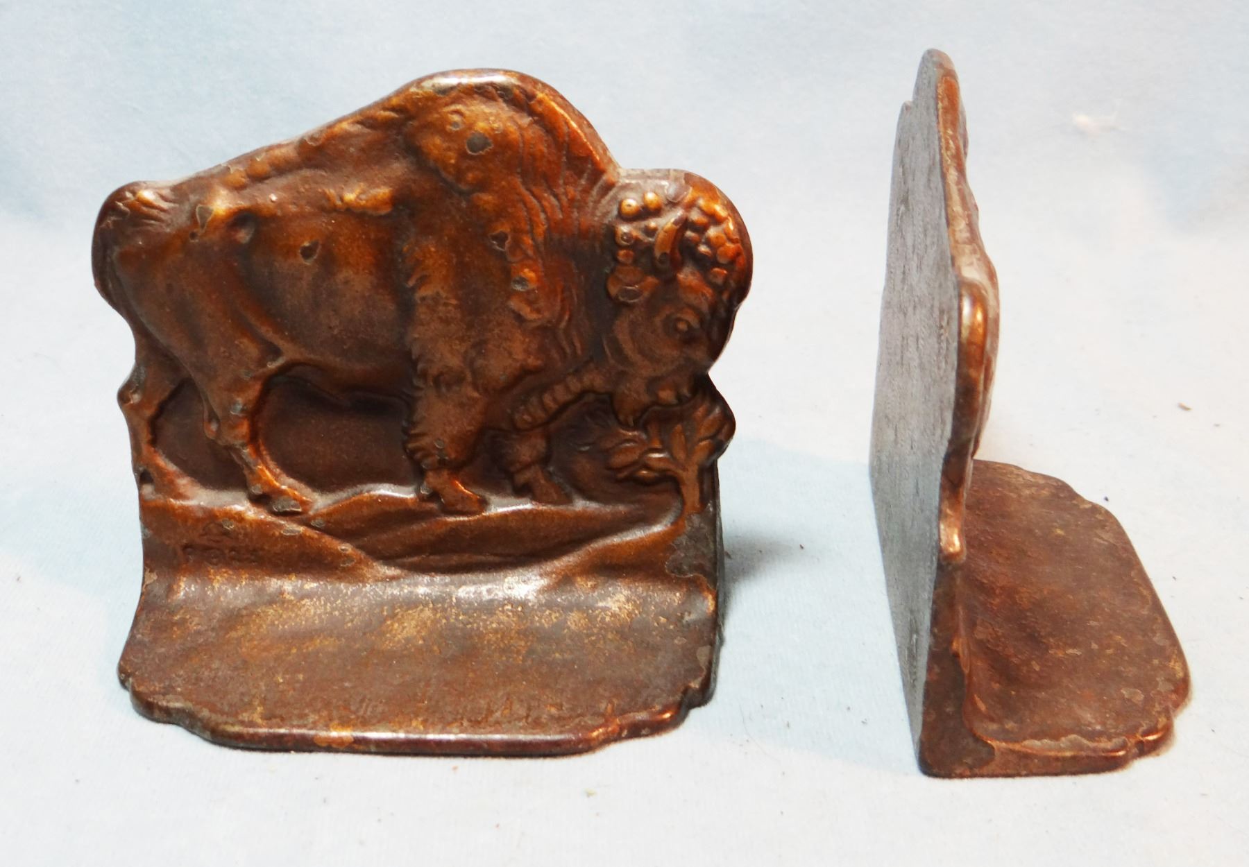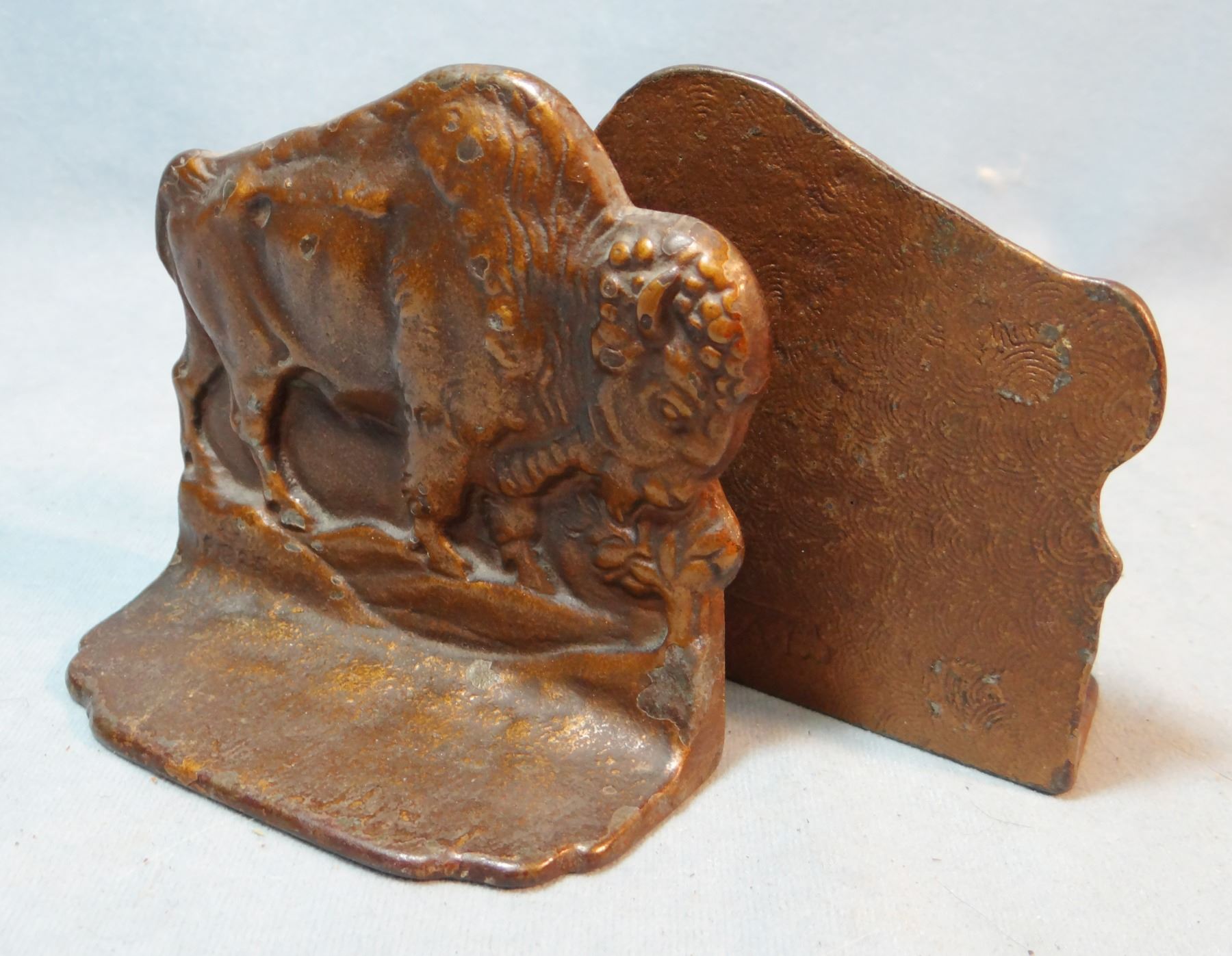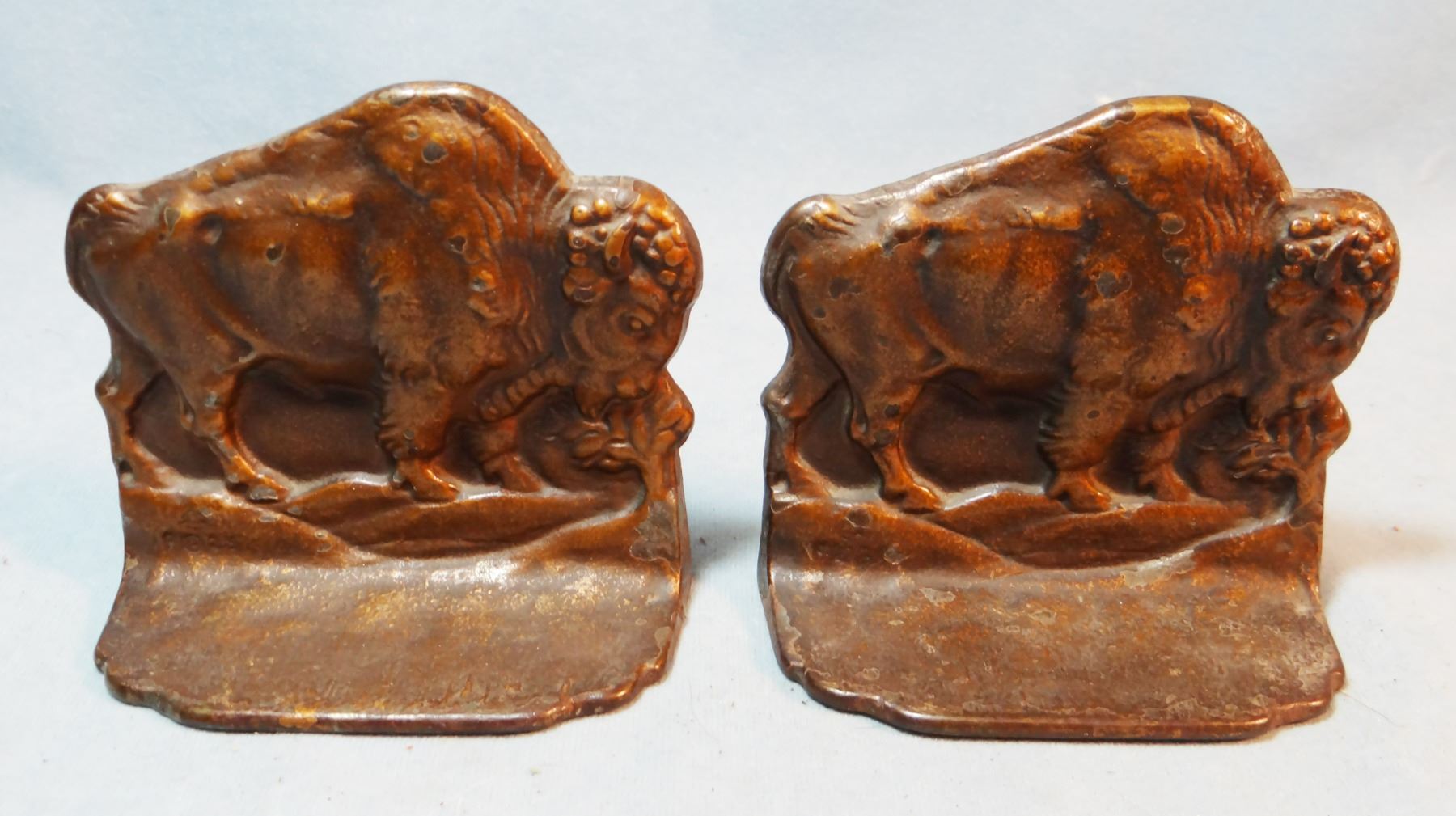 (2) pair of bookends: White Buffalo, 5 ½" x 6", and buffalo, 4"x 4 ½", metal