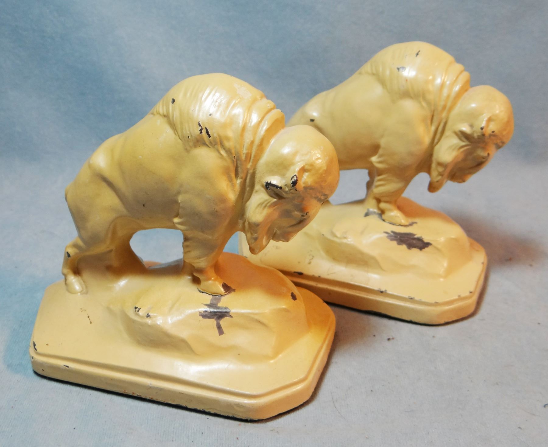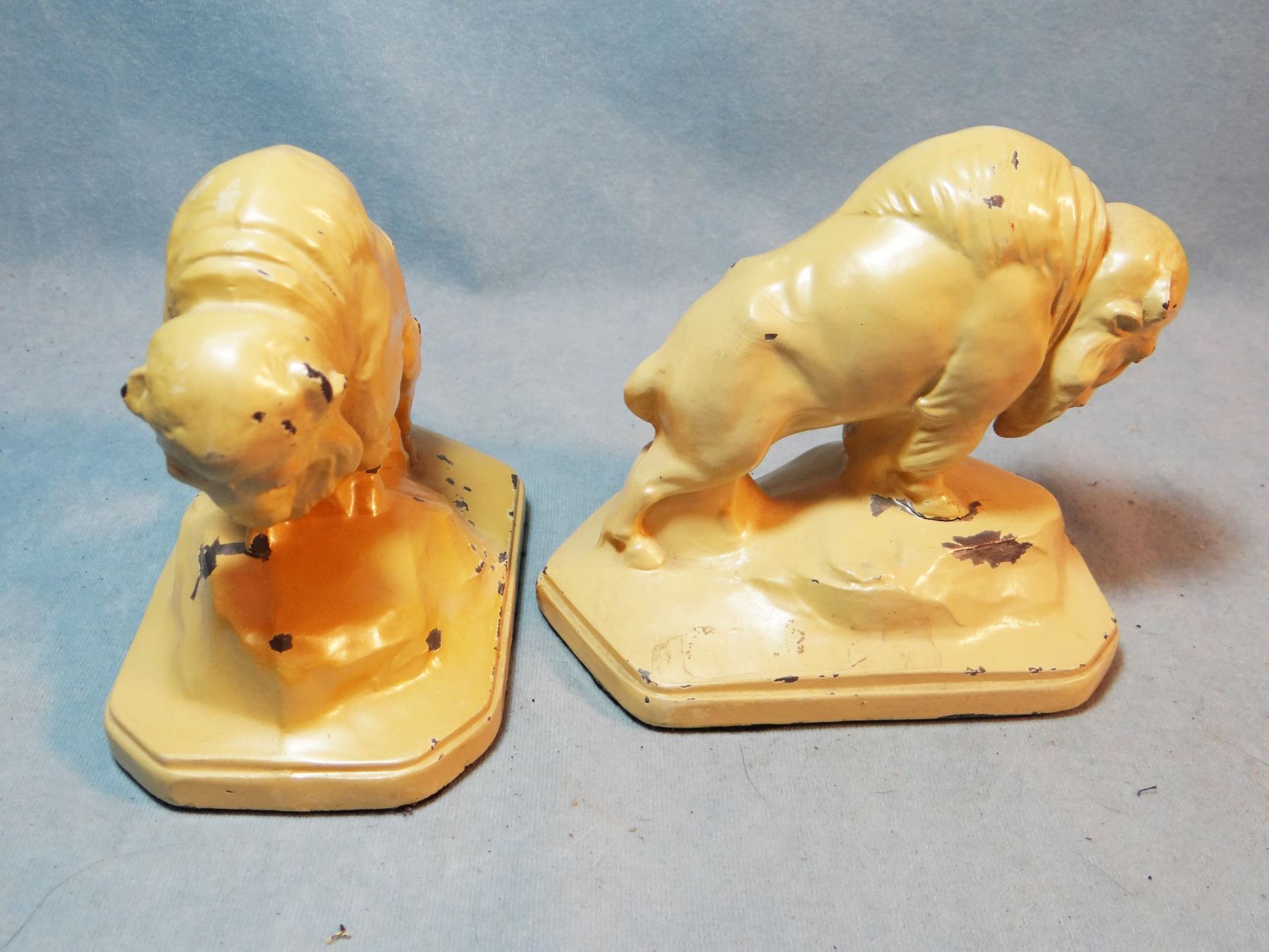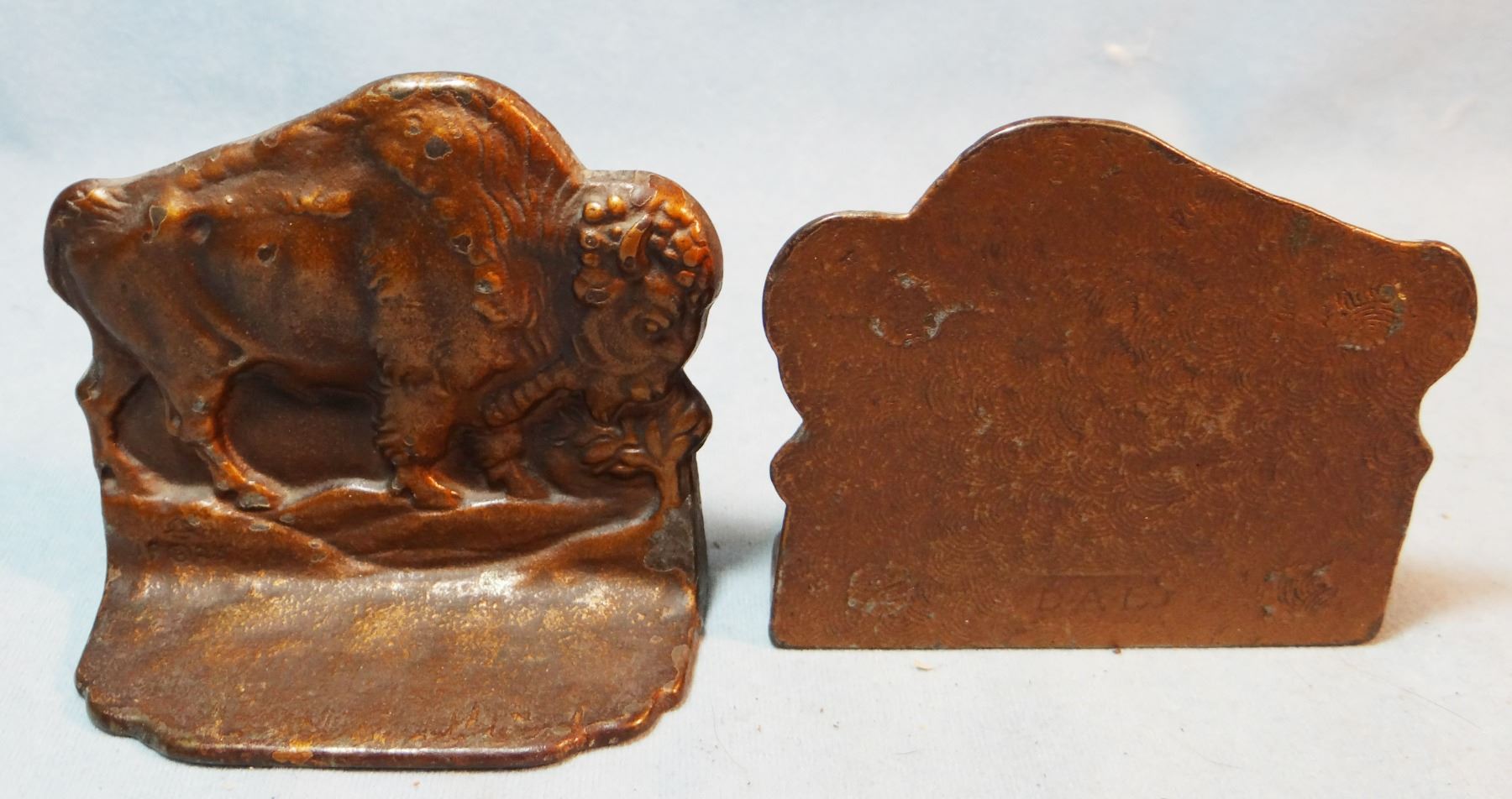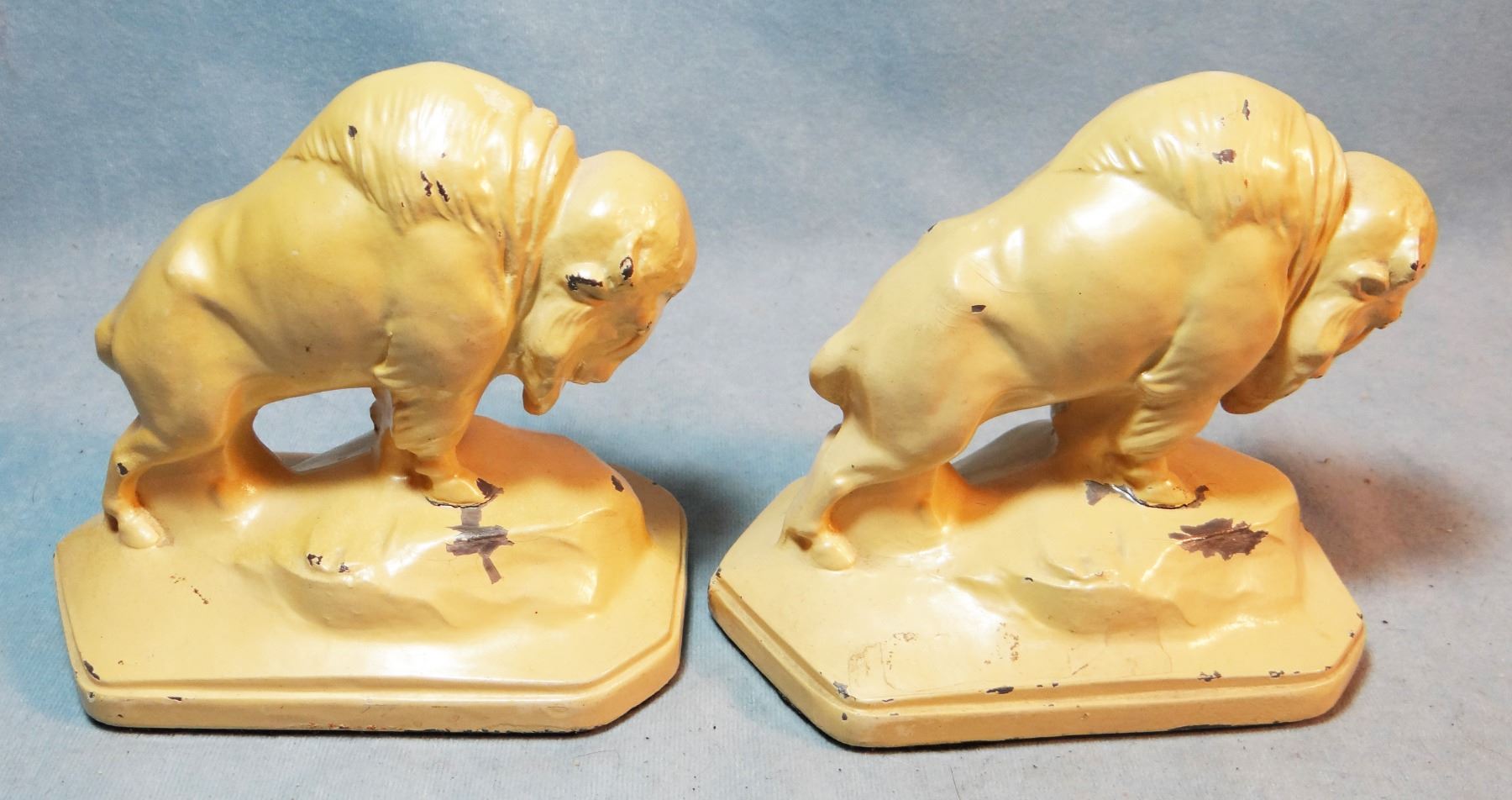 (2) pair of bookends: White Buffalo, 5 ½" x 6", and buffalo, 4"x 4 ½", metal