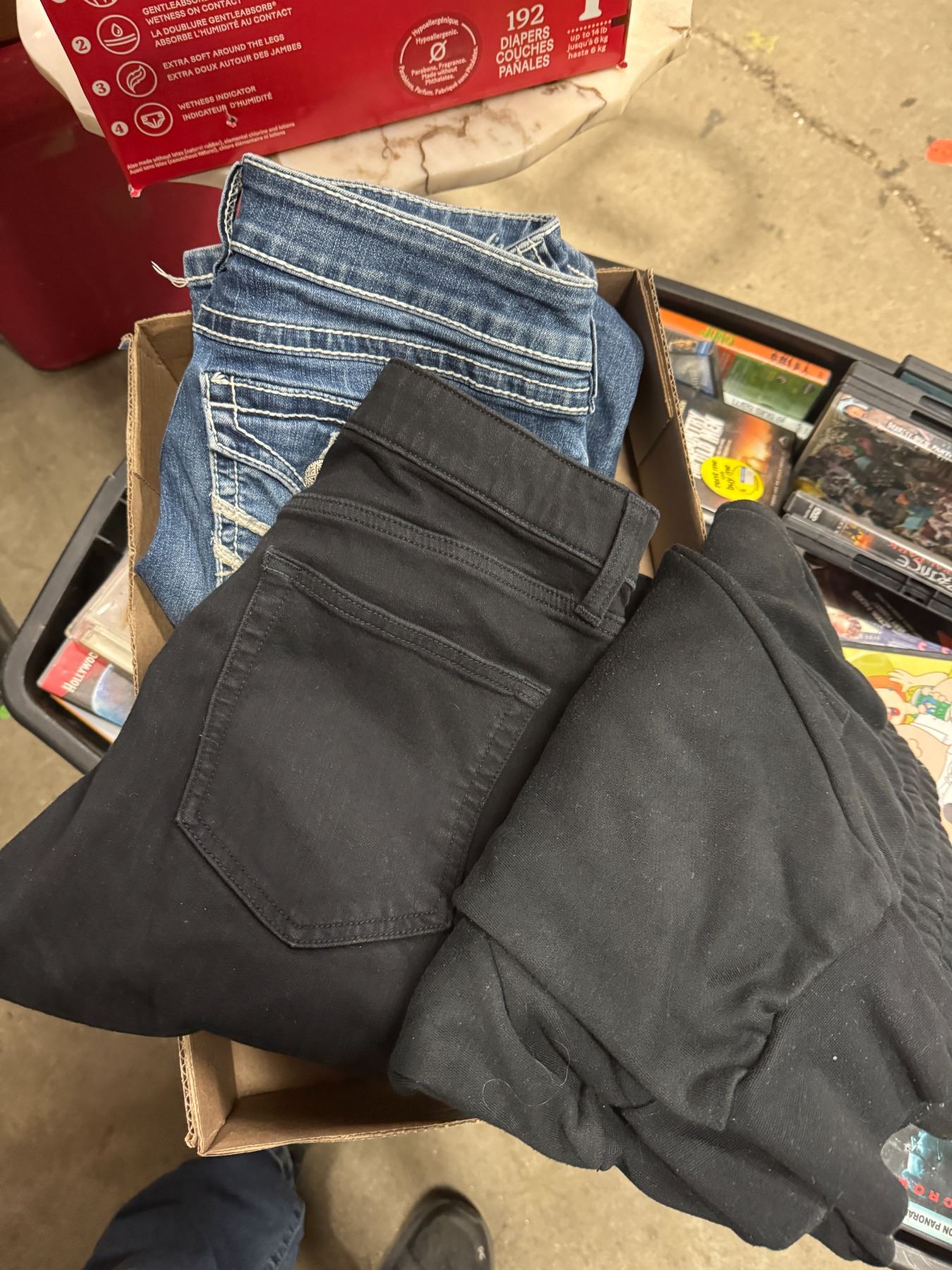 2 pairs jeans one pair of sweats assorted sizes