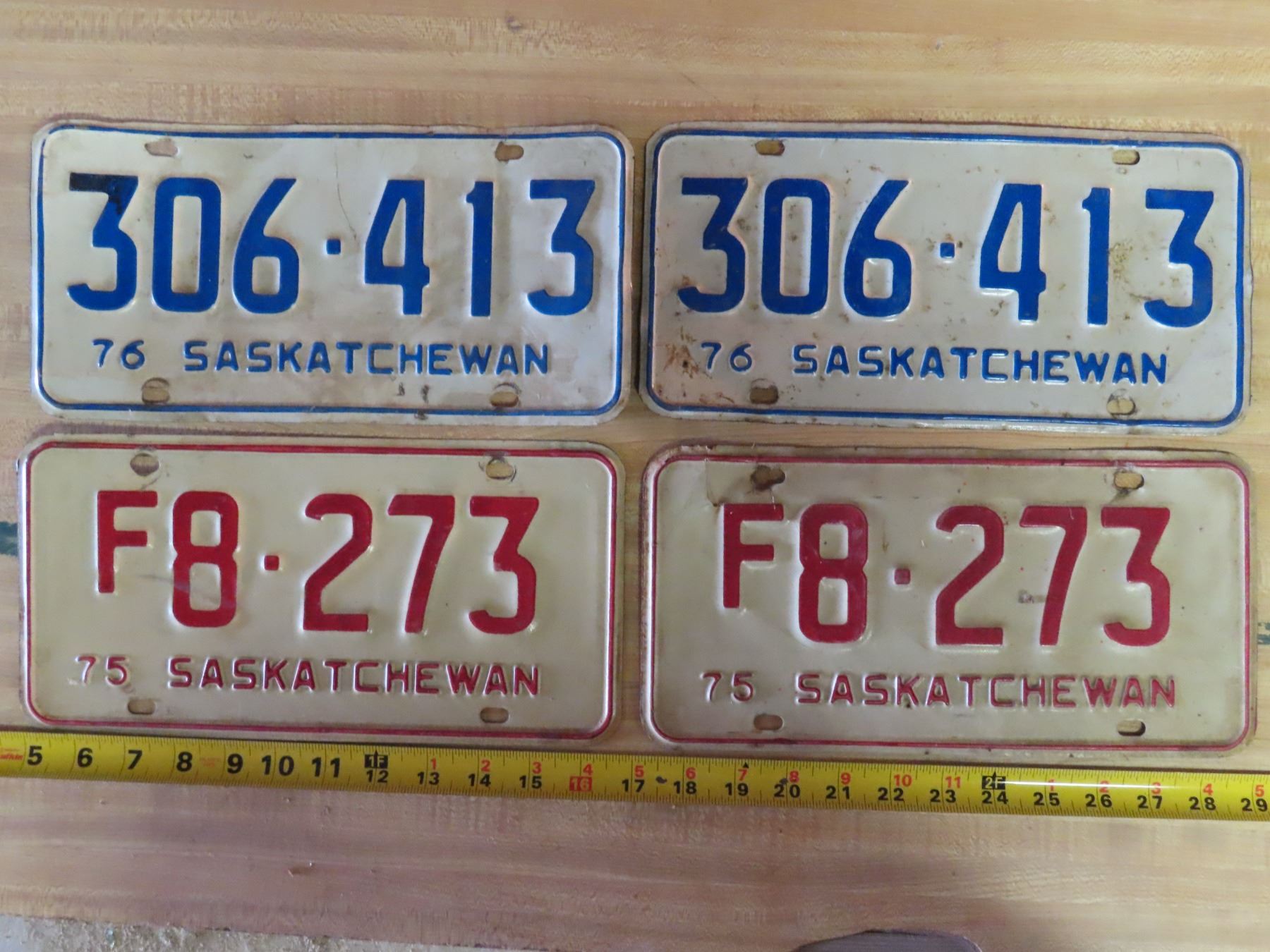 2 pairs of Sask license plates: 1975 & 1976