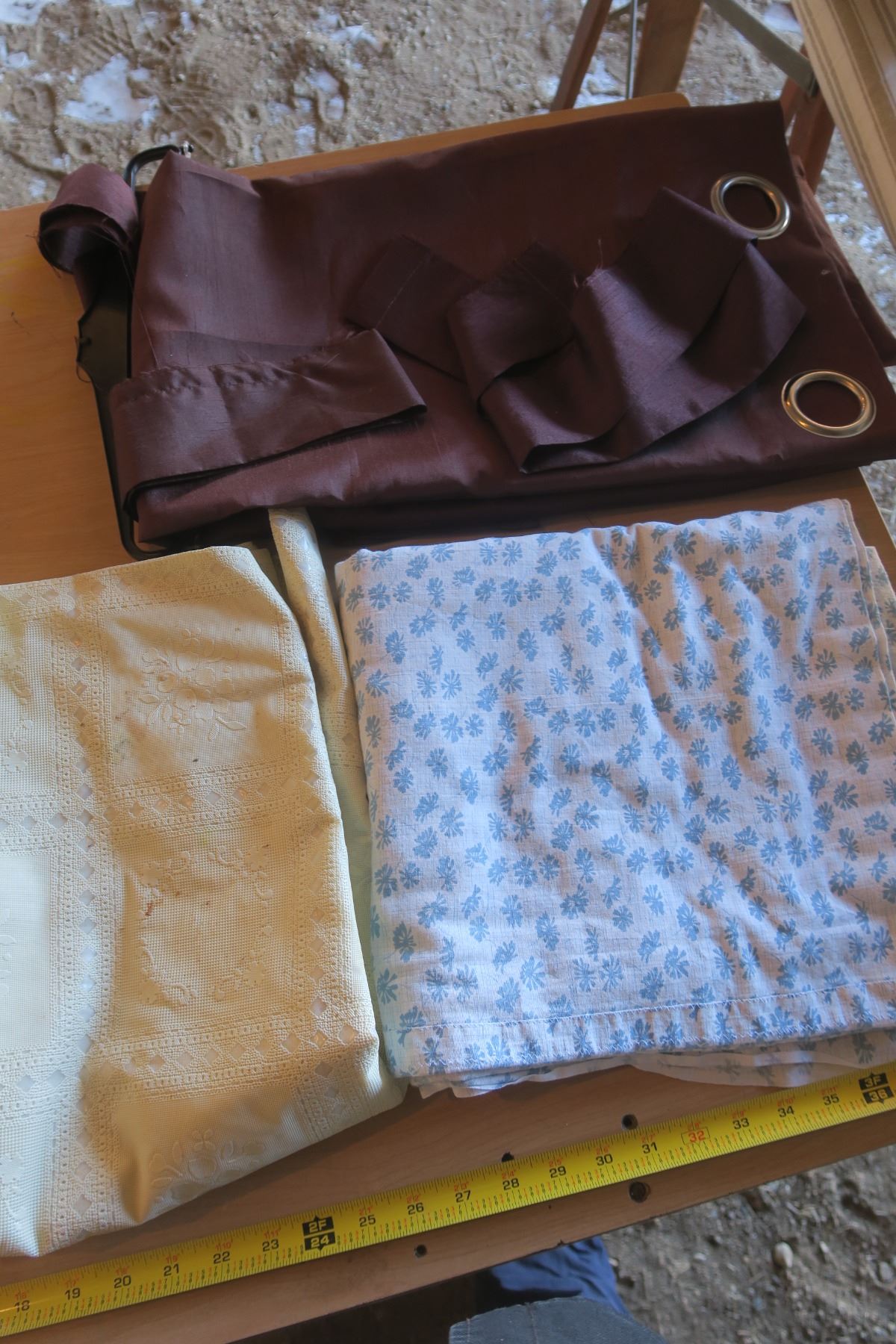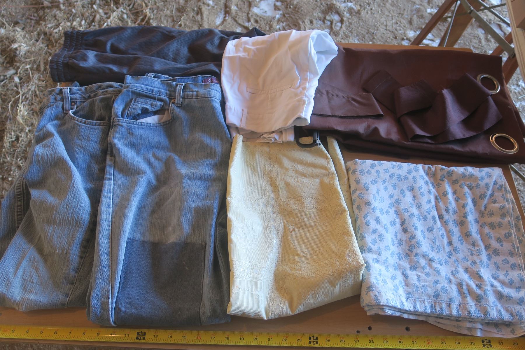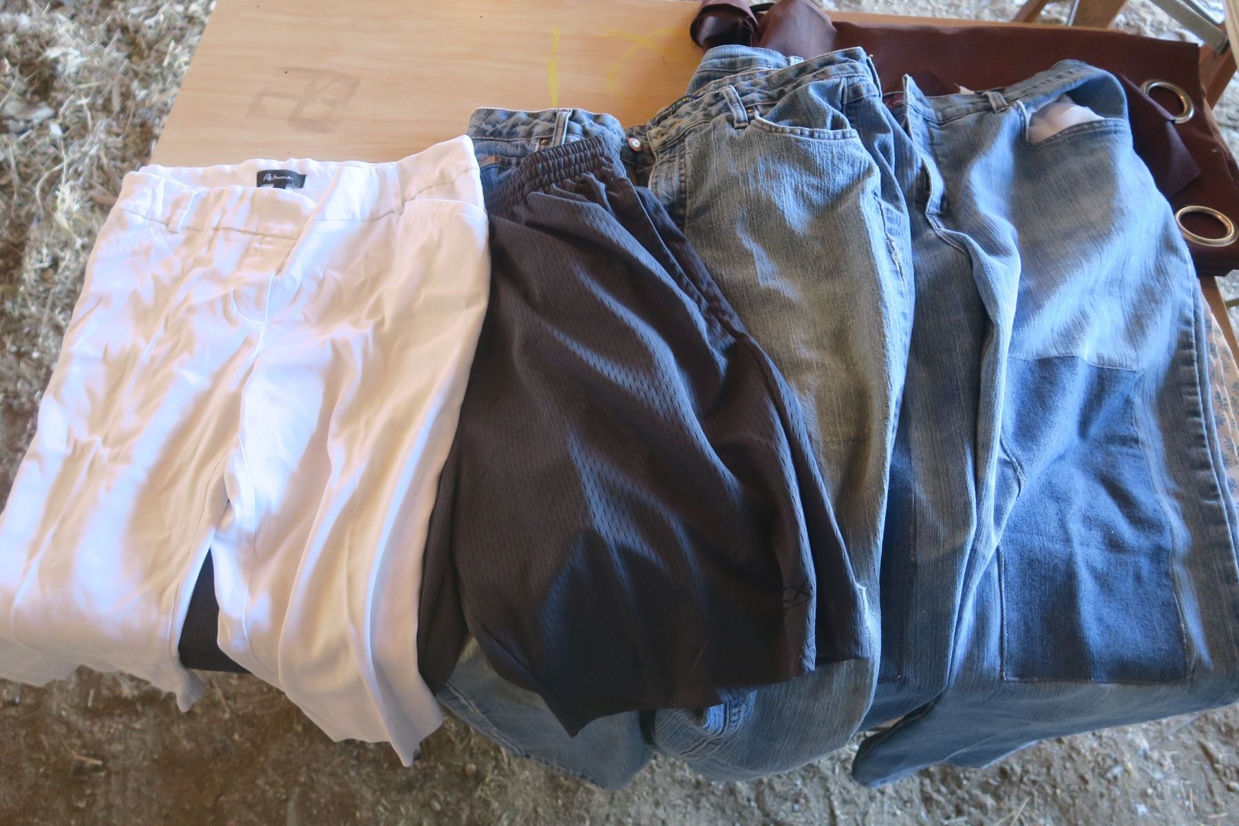 2 pairs of jeans size 16, 2 pairs of shorts size Med. And 12, 2 table clothes and curtain