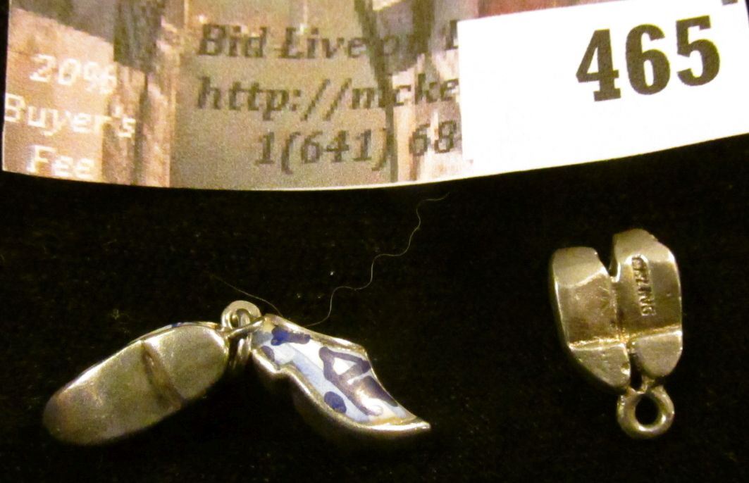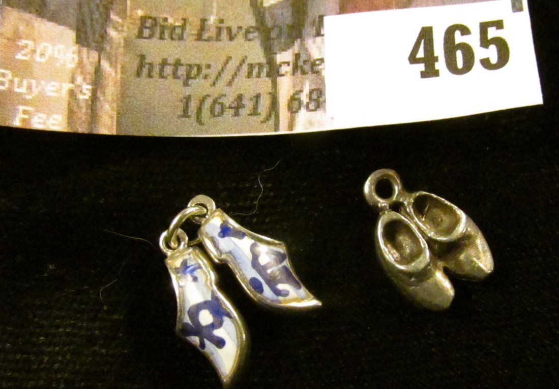 (2) pairs of silver Dutch wooden shoe charms, one with inlaid Delft style enamel. Definitely different!