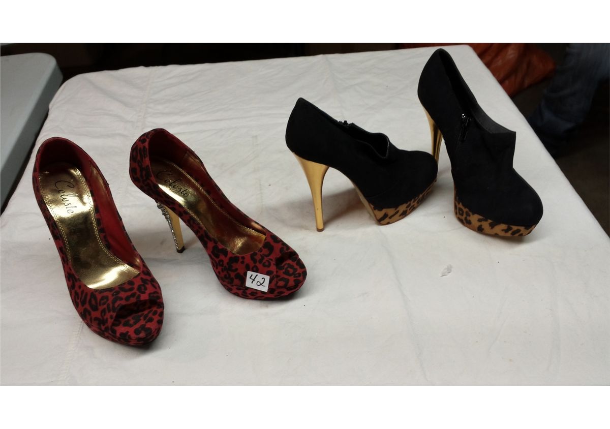 Open Toe Shoe 4.5" heel Red Size 6 / Suede Side Zip 5" heel Black Size 6