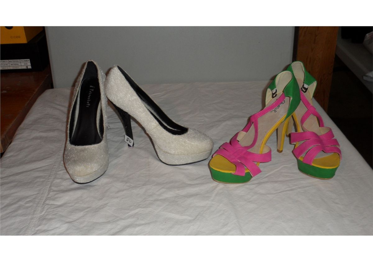 Pump 4" heel White Size 41 / Sandal 5" heel Green/Pink Size 41