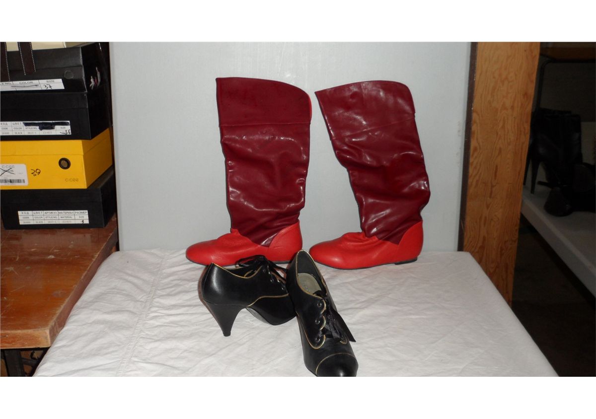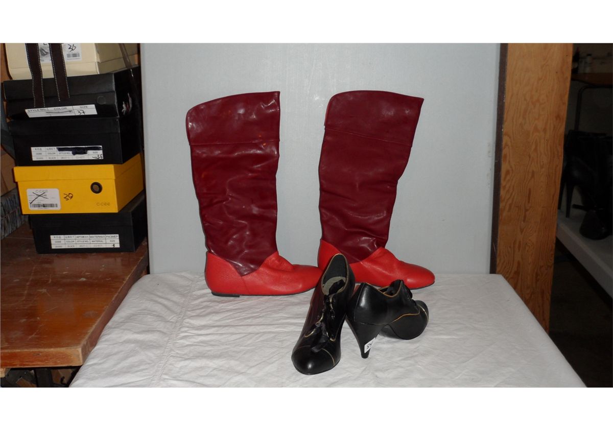 Knee High Boots flat Red Size 5 / Lace Up Pump 2" heel Black Size 5
