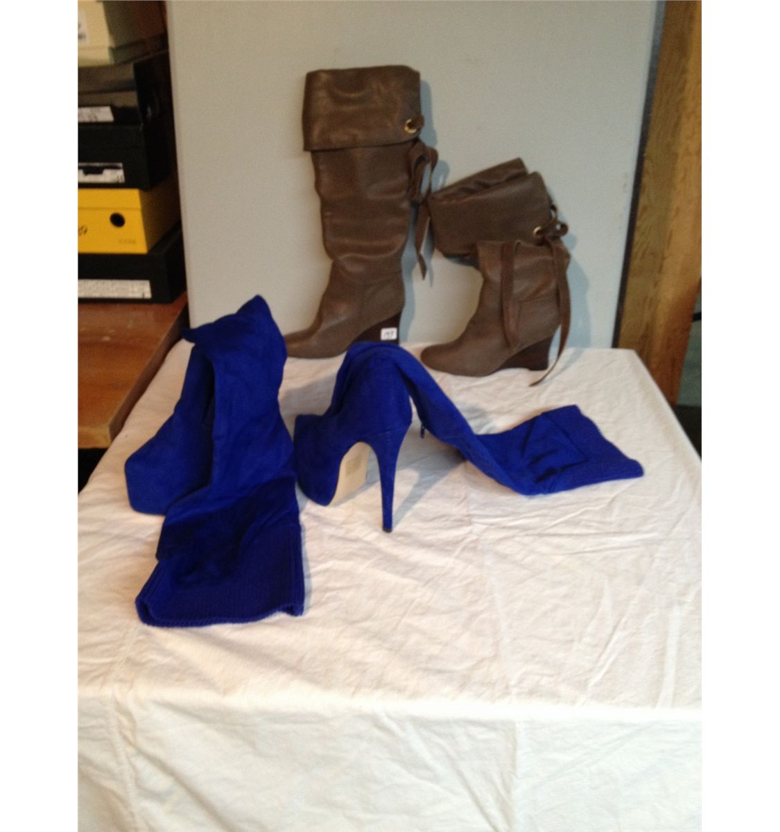Suede Boots 5" heel Blue Size 36 / Over the Knee Boot 2.5 " heel Brown Size S - 6