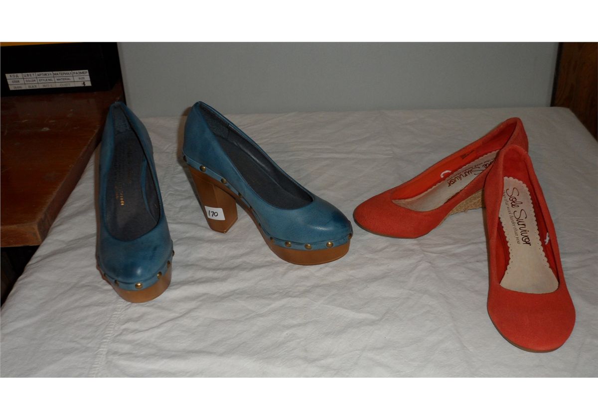 Shoe 4" heel Blue Size 37 / Suede Wedge 2" heel Orange Size 37