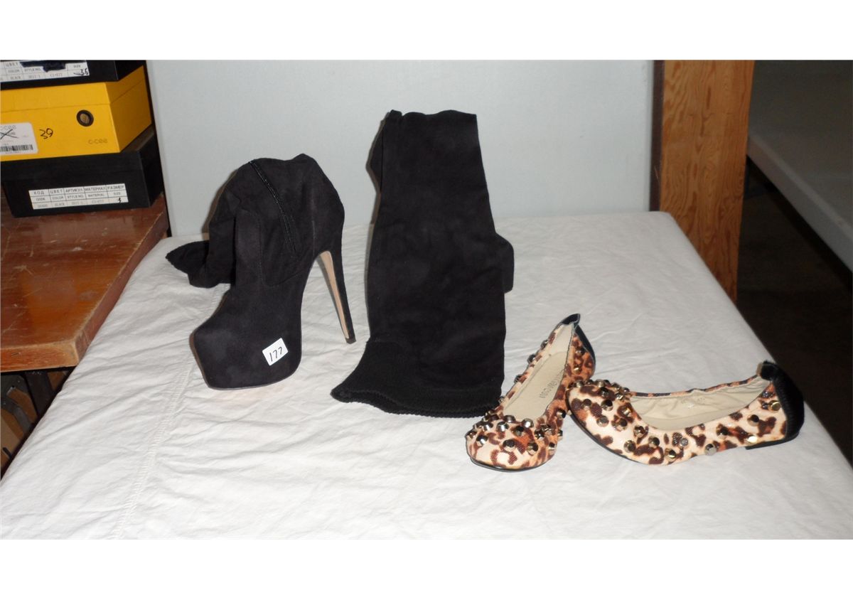 Suede Boot 5" heel Black Size 36 / Slip on Shoe flat Animal Print Size 36