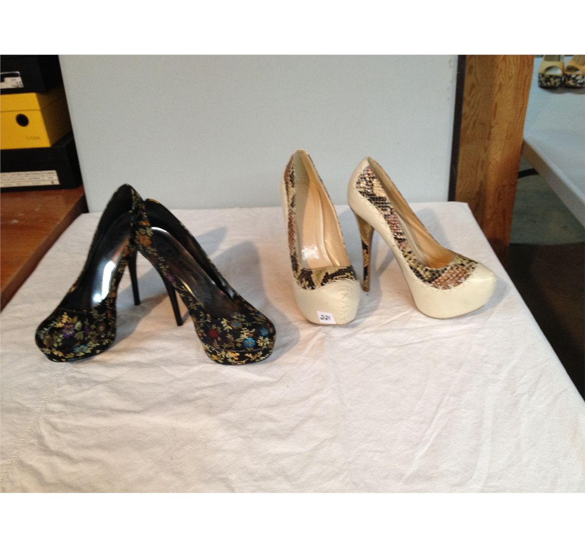 Shoe 5" heel Black flower Size 8 / Shoe 5" Tan/Snake Skin Size 8.5