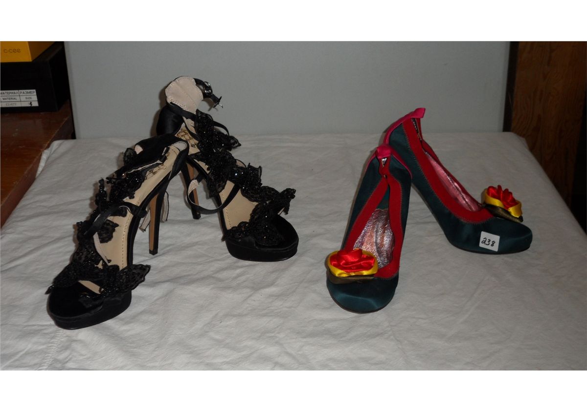Sandal 5" heel Black Size 39 / Shoe 3.5" heel Green/Red Size 39