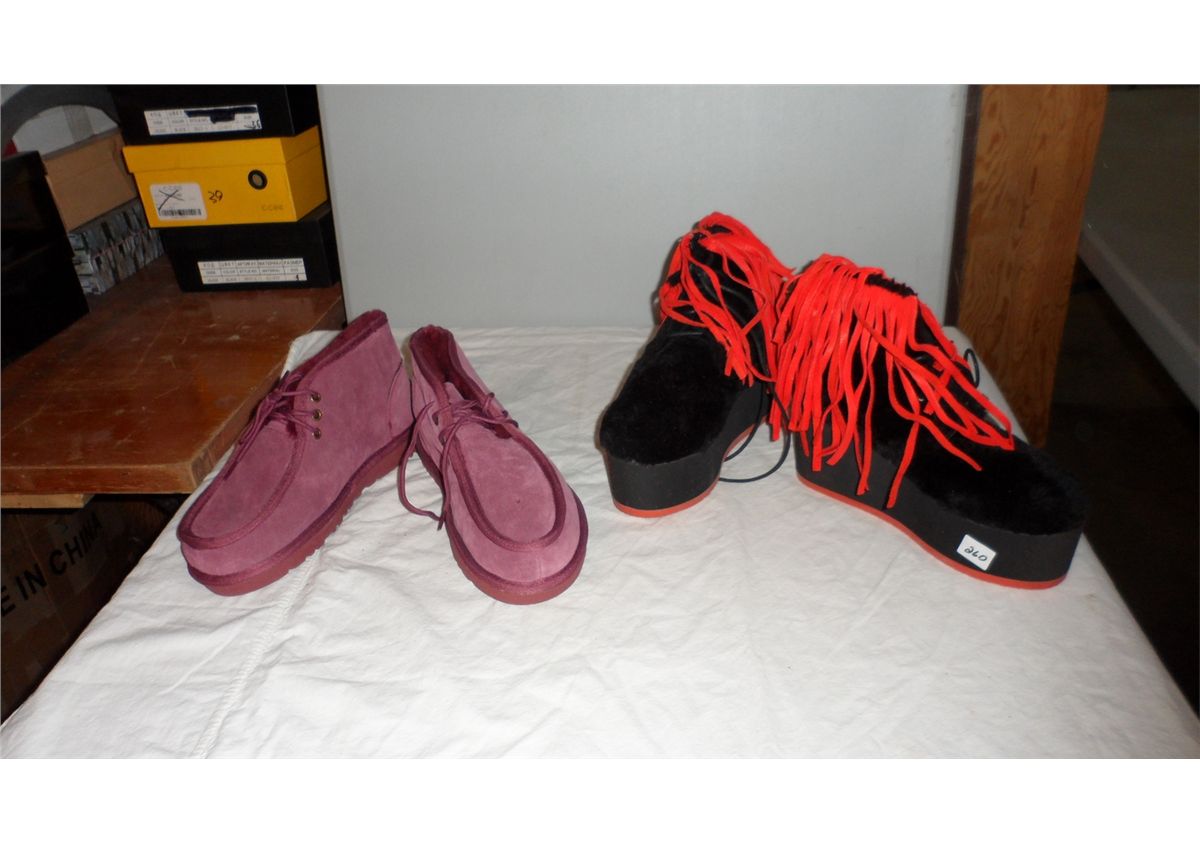 Wedge Walk Boot 3" heel Black Size 38 / Fur Lined Suede Boot flat Pink Size 8