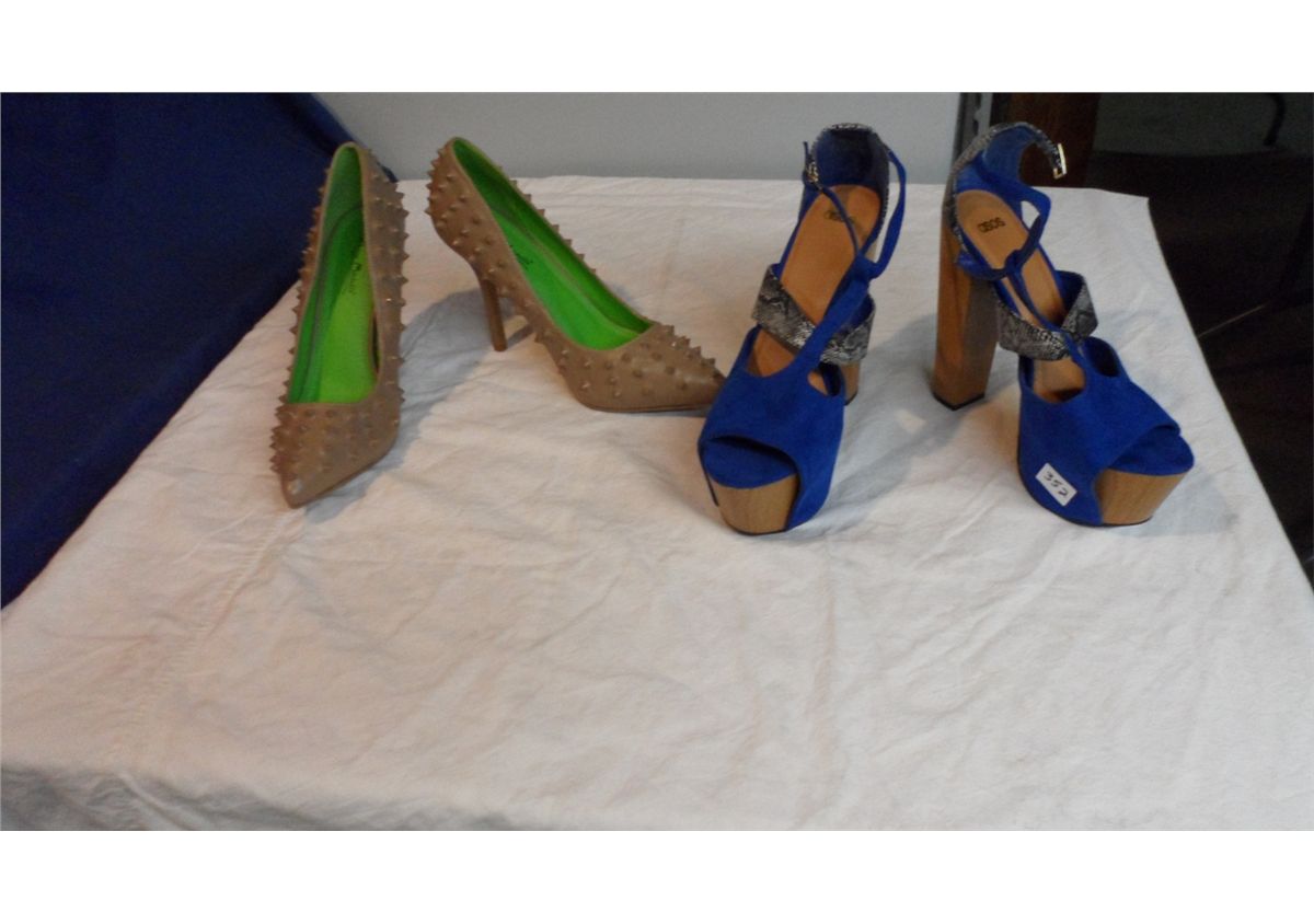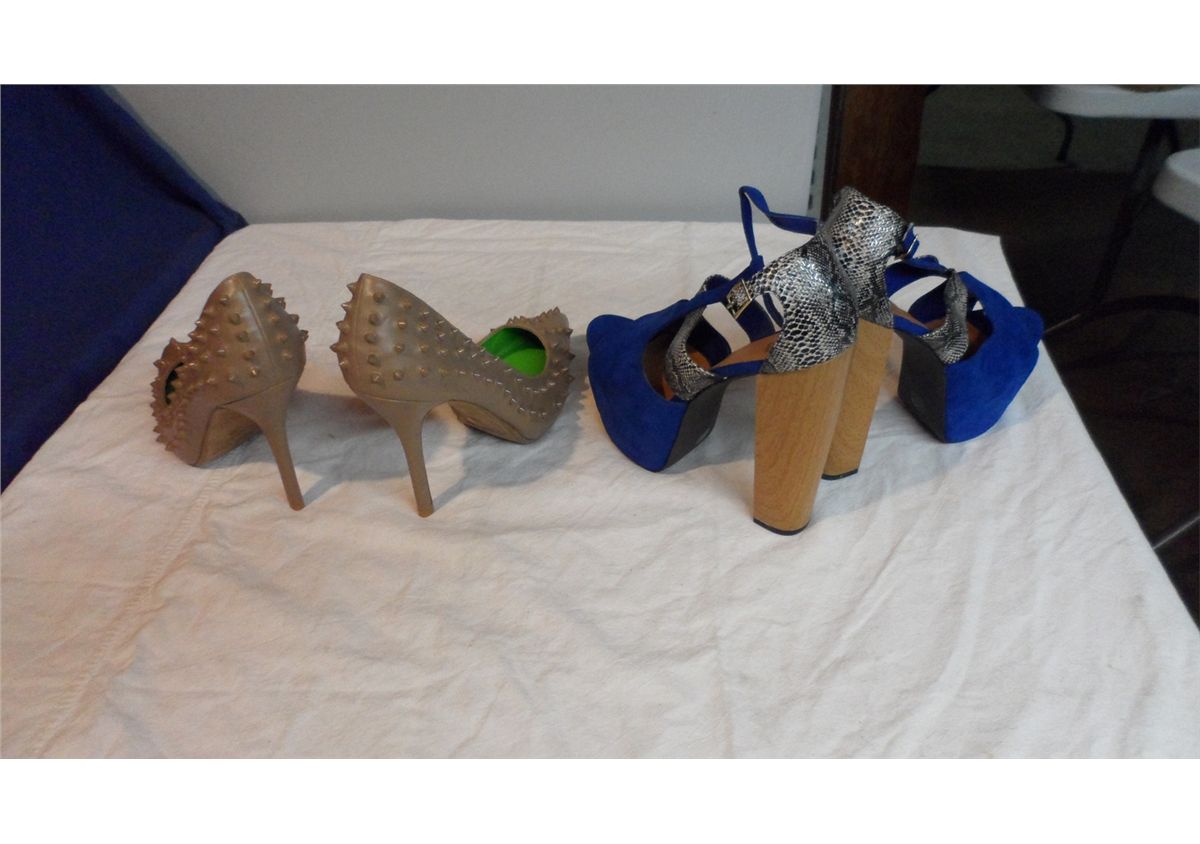 Suede Sandal 5" heel Blue Size 10 / Studded Pump 4" heel Brown Size 10