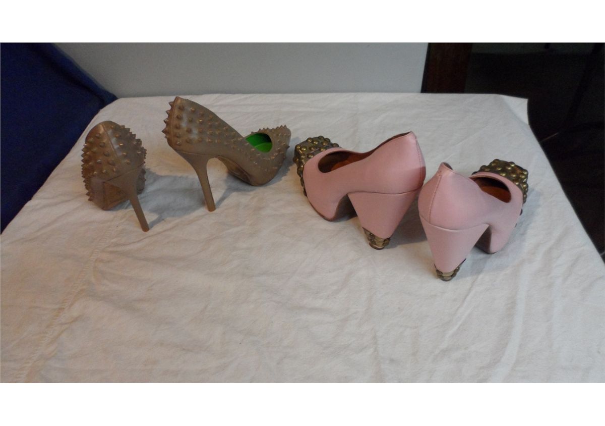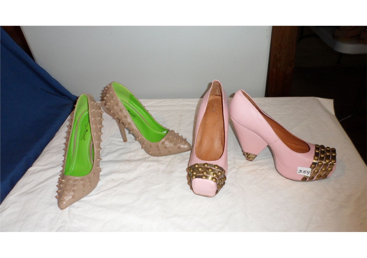 Shoe 4" heel Pink Size 7M / Studded Pump 4" heel Brown Size 37
