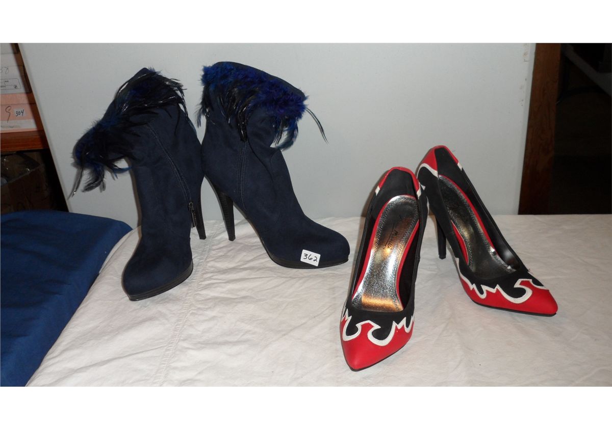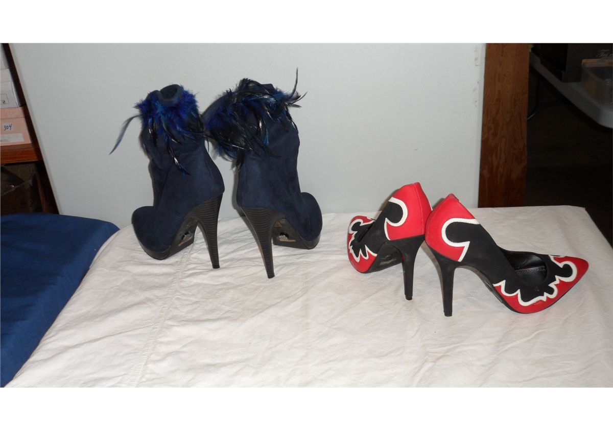 Suede Boots 4" heel Blue Size 39 / Pump 4" heel Red/Black Size 39
