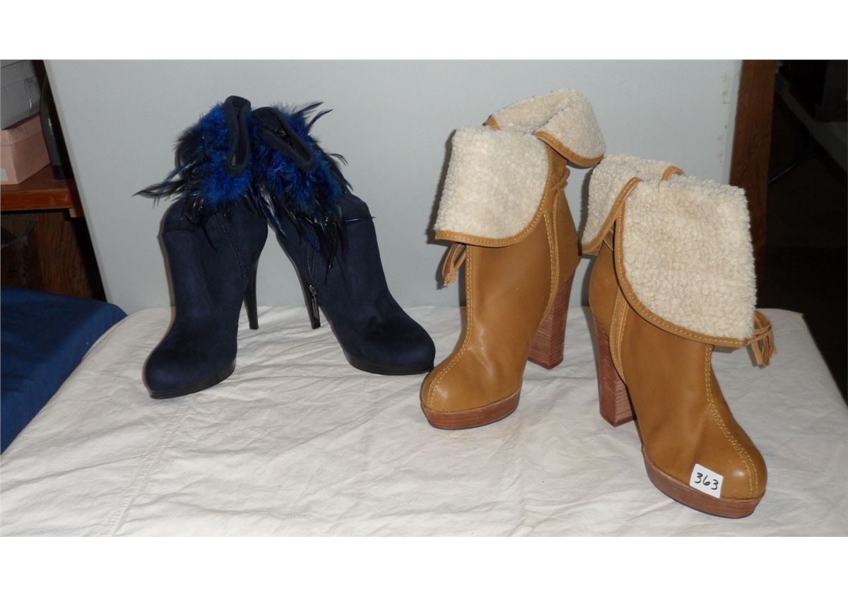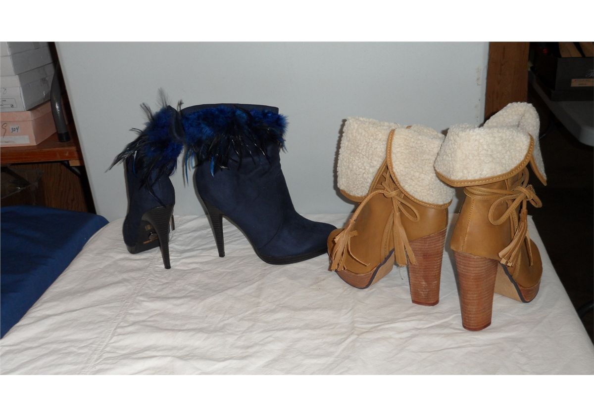 Leeather Boot 4" heel Tan Size 38 / Suede Boot 4" heel Blue Size 38