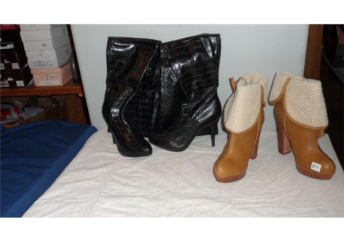 Over the Knee Boot 4" heel Black Size 38 / Leather Boot 4" Tan Size 38