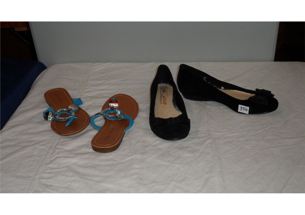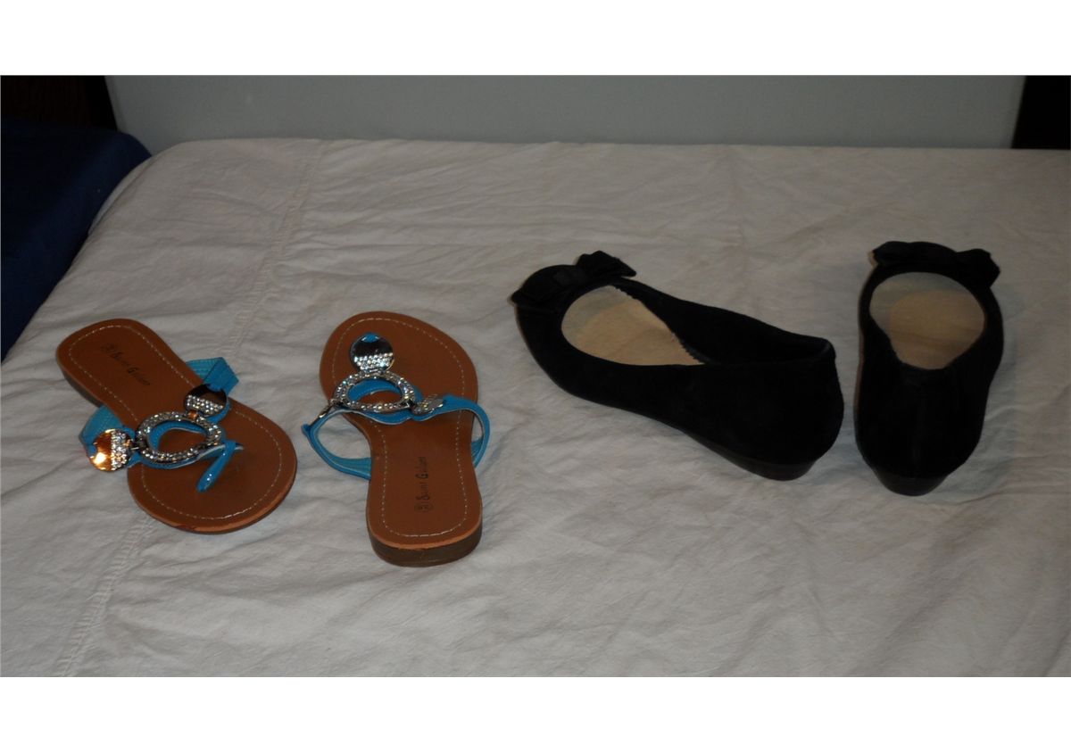 Slip On shoe flat Black Size 38 / Leather Sandal flat Blue/tan Size 38