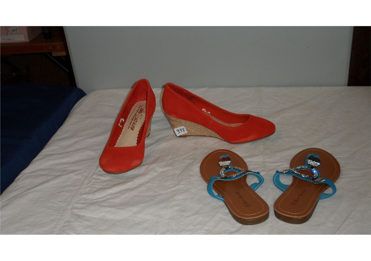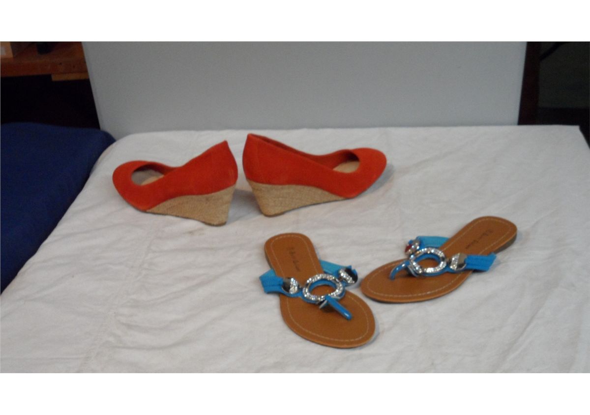 Slip On Shoe 2" heel Orange Size 38 / Sandal flat Blue Size 38