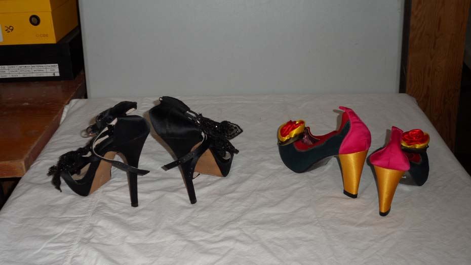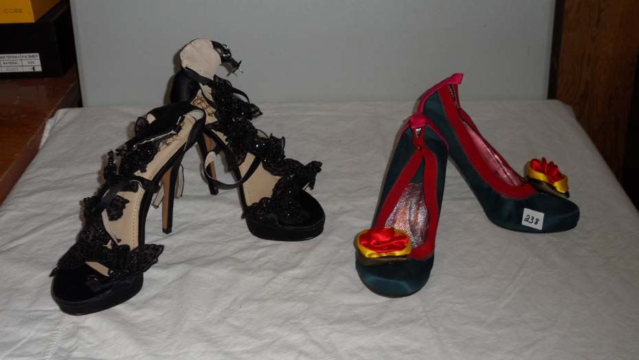 Sandal 5" heel Black Size 39 / Shoe 3.5" heel Green/Red Size 39